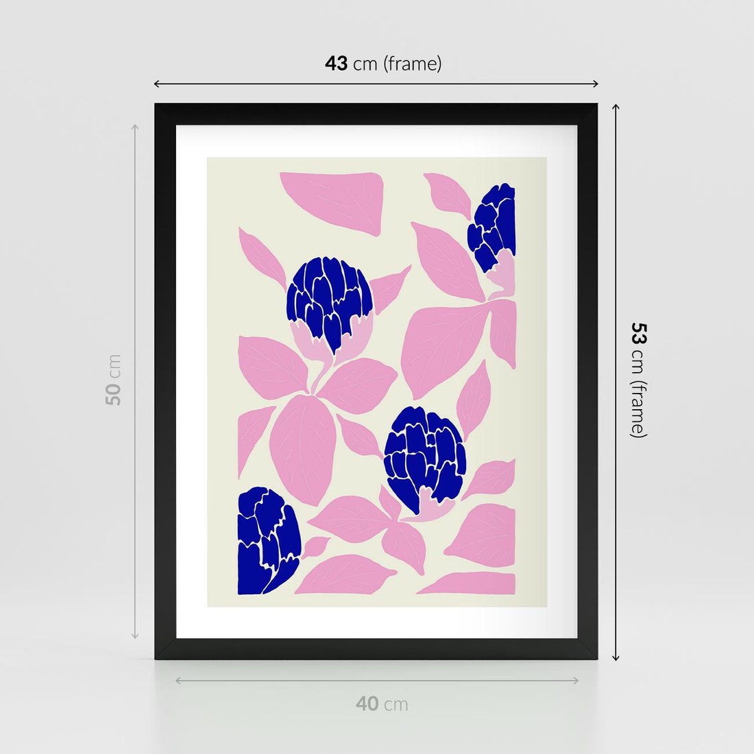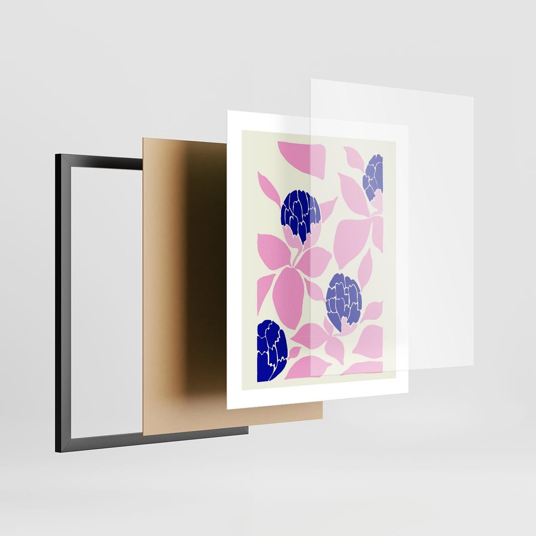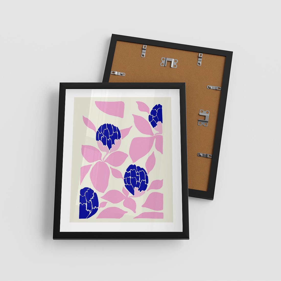 Ta nowoczesna sztuka przeniesie Cię w delikatny świat kwiatów, łącząc odcienie różu i kobaltu w dynamiczną kompozycję. Wyraź swój styl z tą unikalną dekoracją.