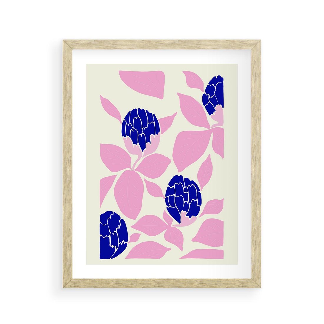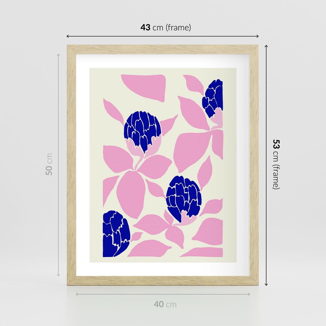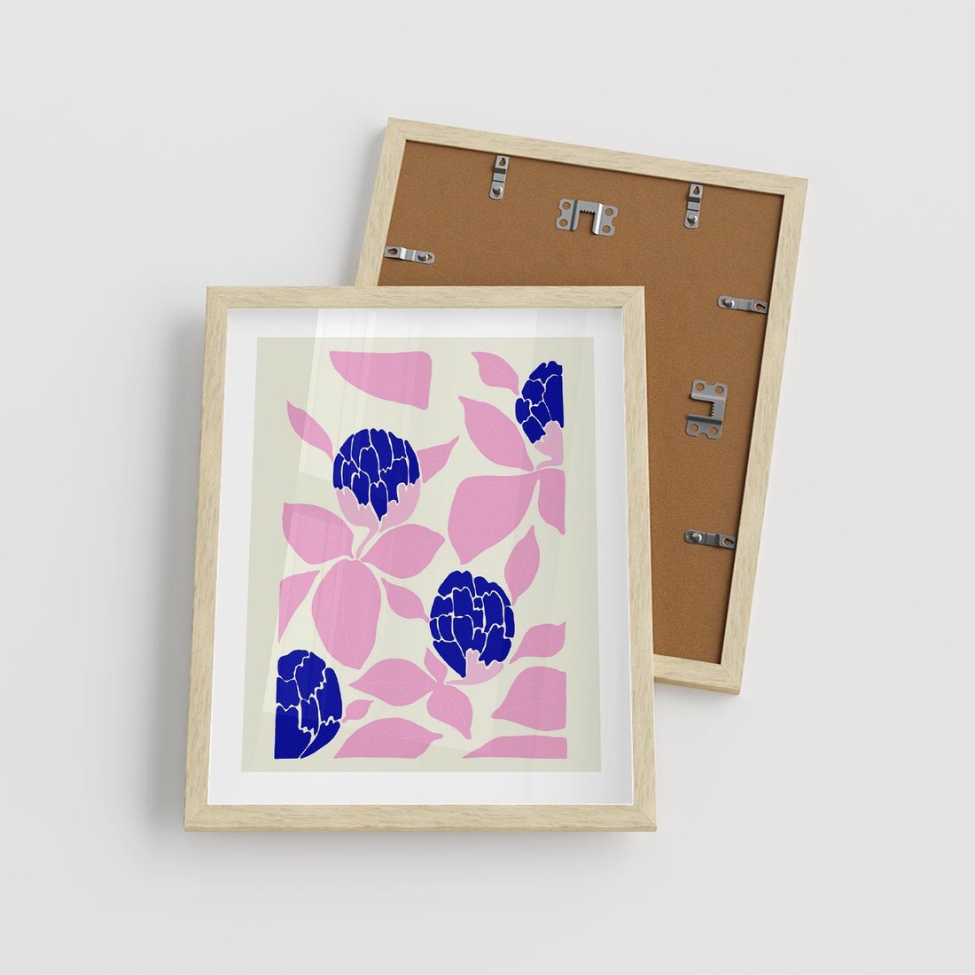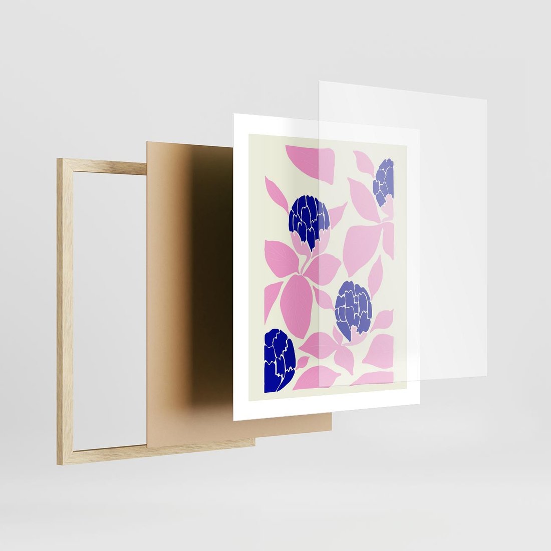Ta nowoczesna sztuka przeniesie Cię w delikatny świat kwiatów, łącząc odcienie różu i kobaltu w dynamiczną kompozycję. Wyraź swój styl z tą unikalną dekoracją.