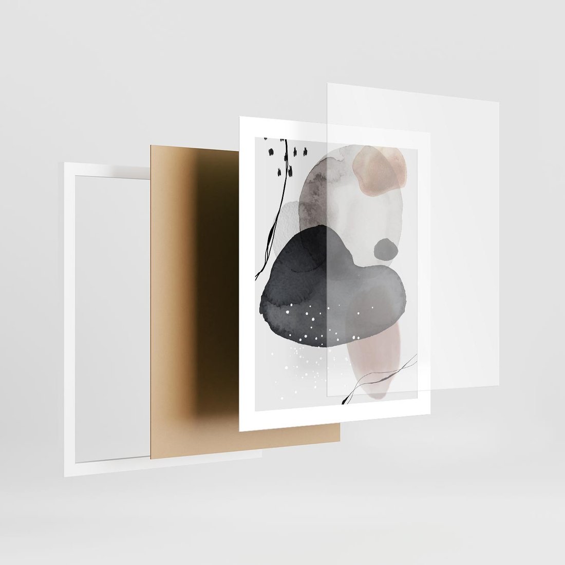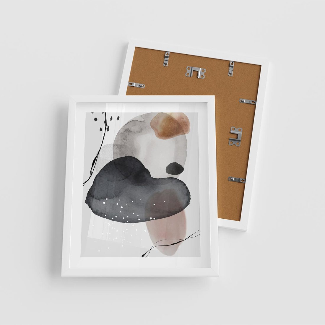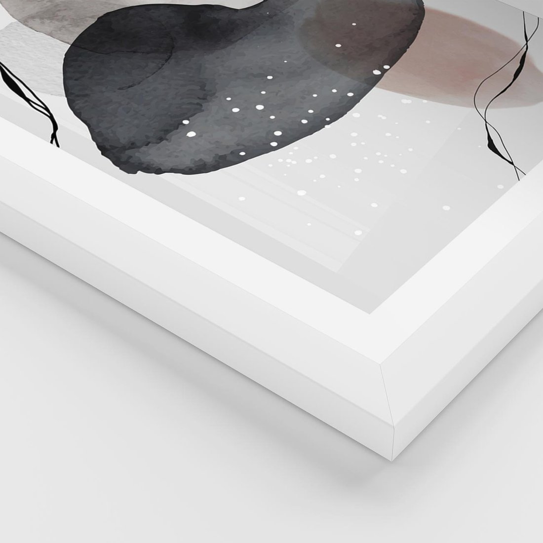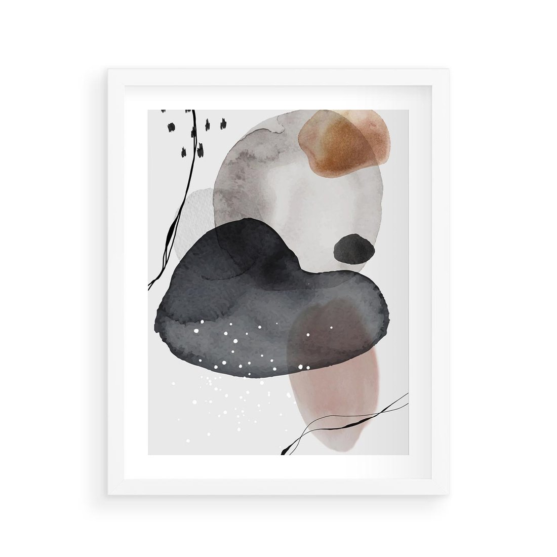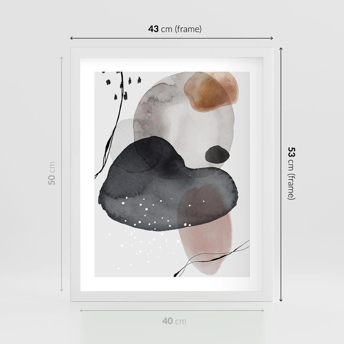 Plakat w ramie 40x50 - Impresje Harmonii - abstrakcyjne plamy akwarelowe, czarny szkic - rama biała