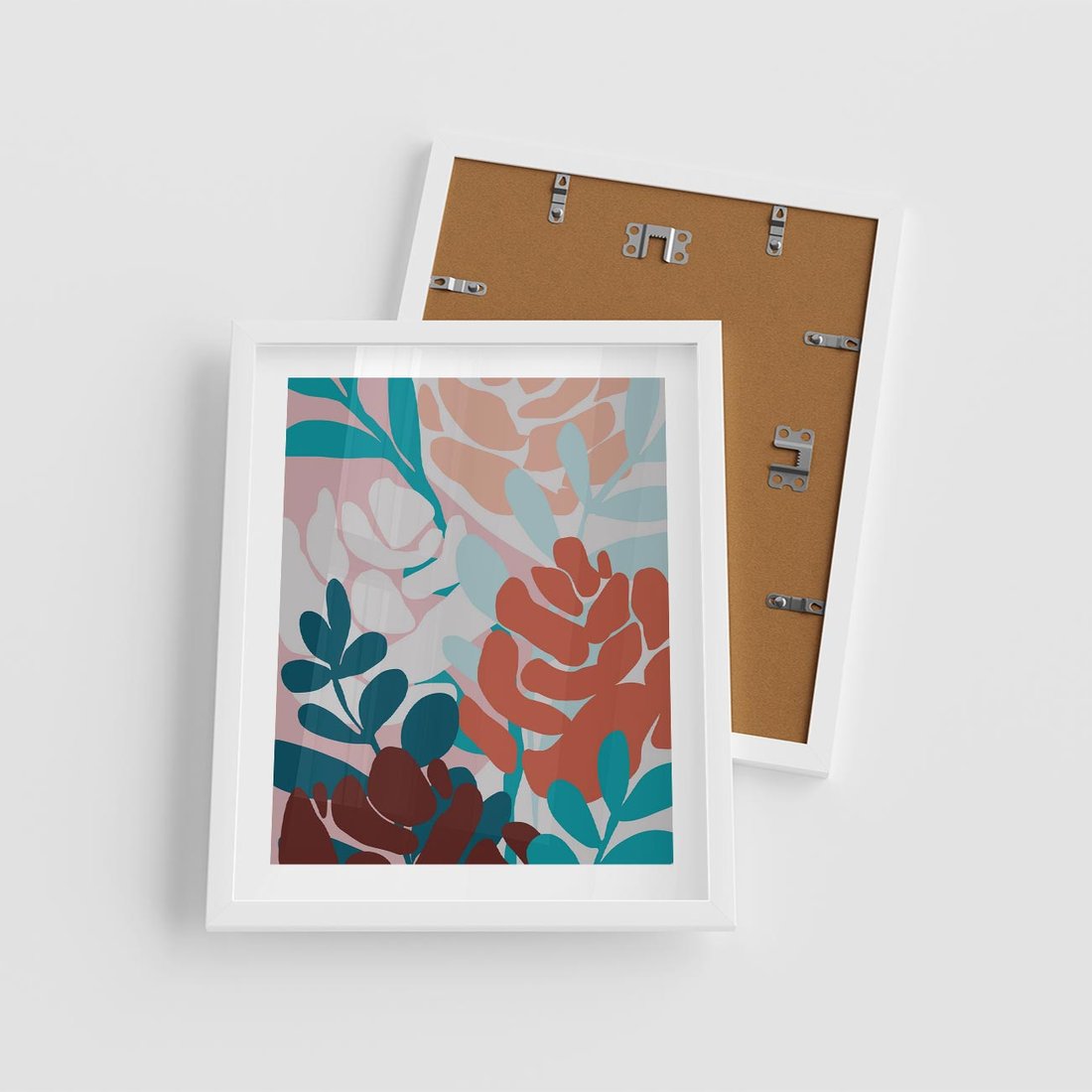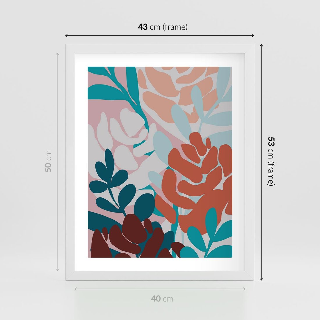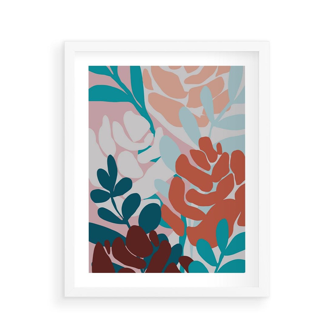 Plakat w ramie 40x50 - Impresje Kształtów - abstrakcyjna kompozycja kwiatowych form, kolor zgaszone - rama biała