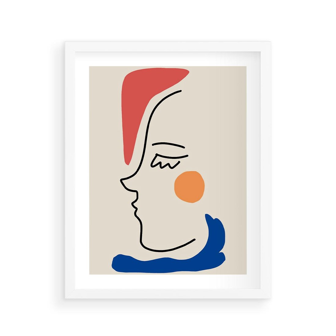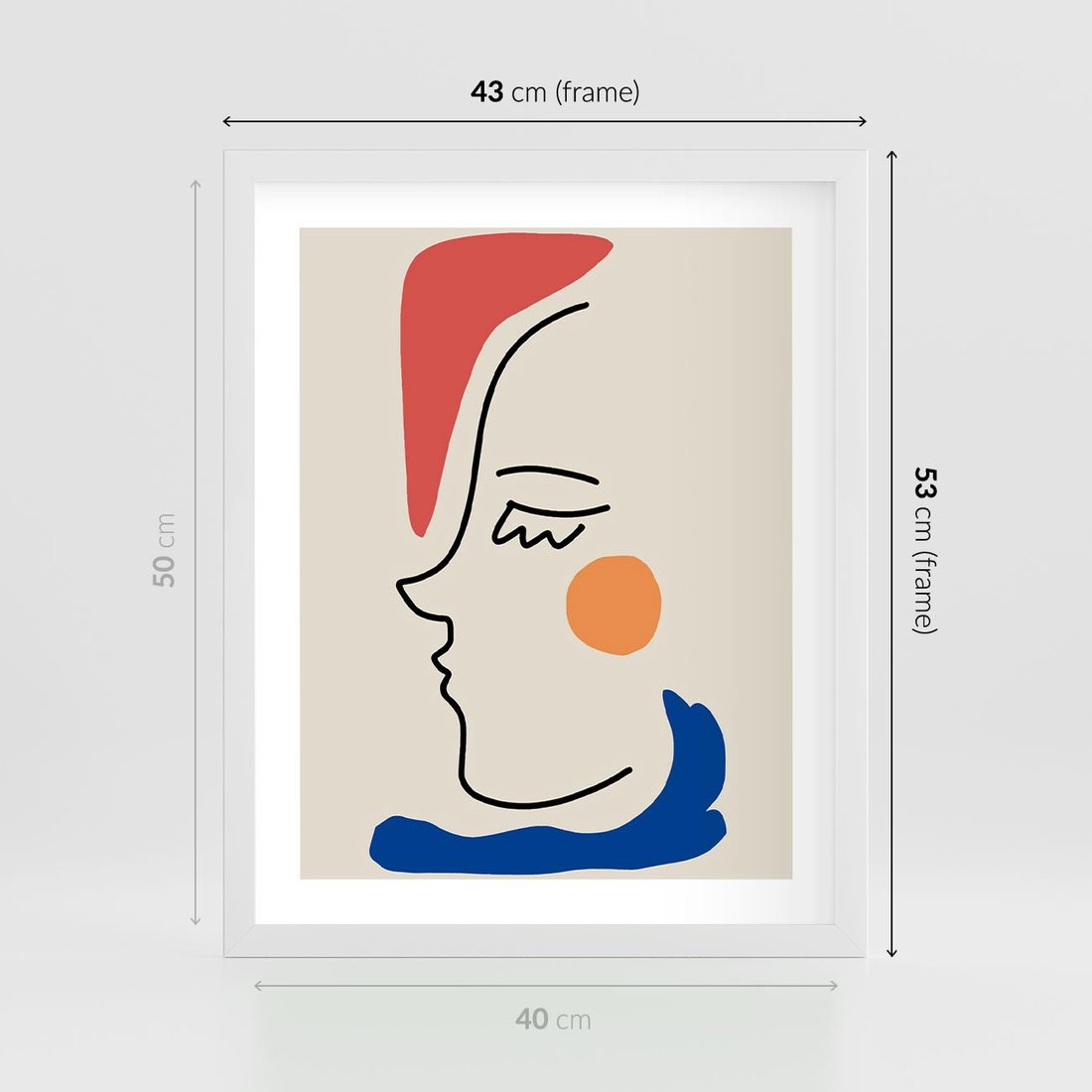 Plakat w ramie 40x50 - Impresje Kształtów - abstrakcyjny obraz, przypomina twarz - rama biała