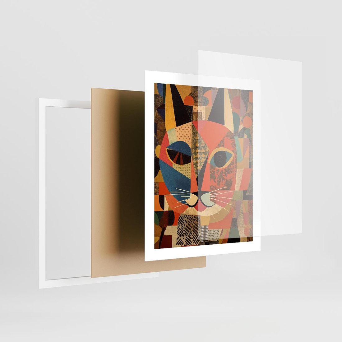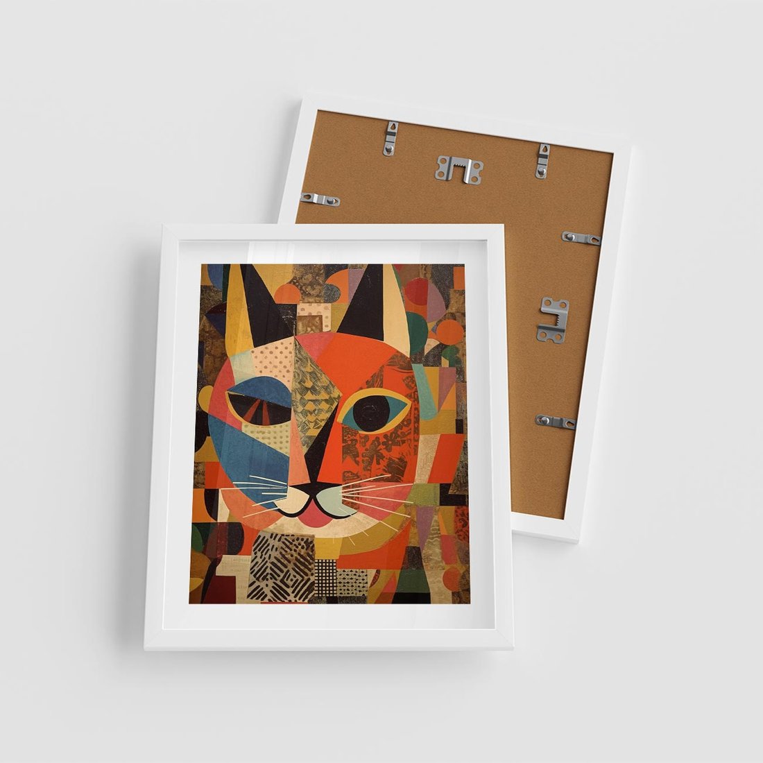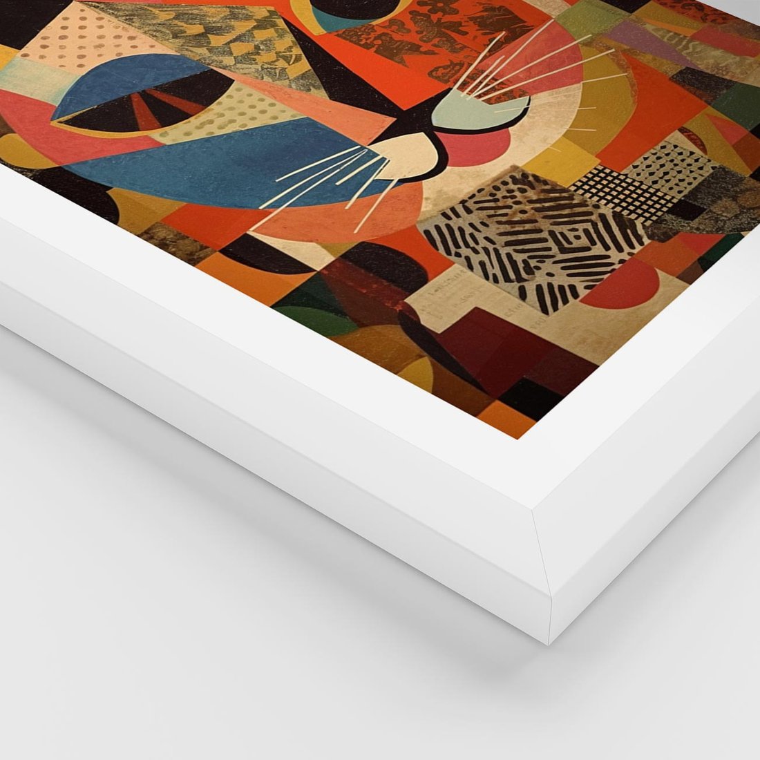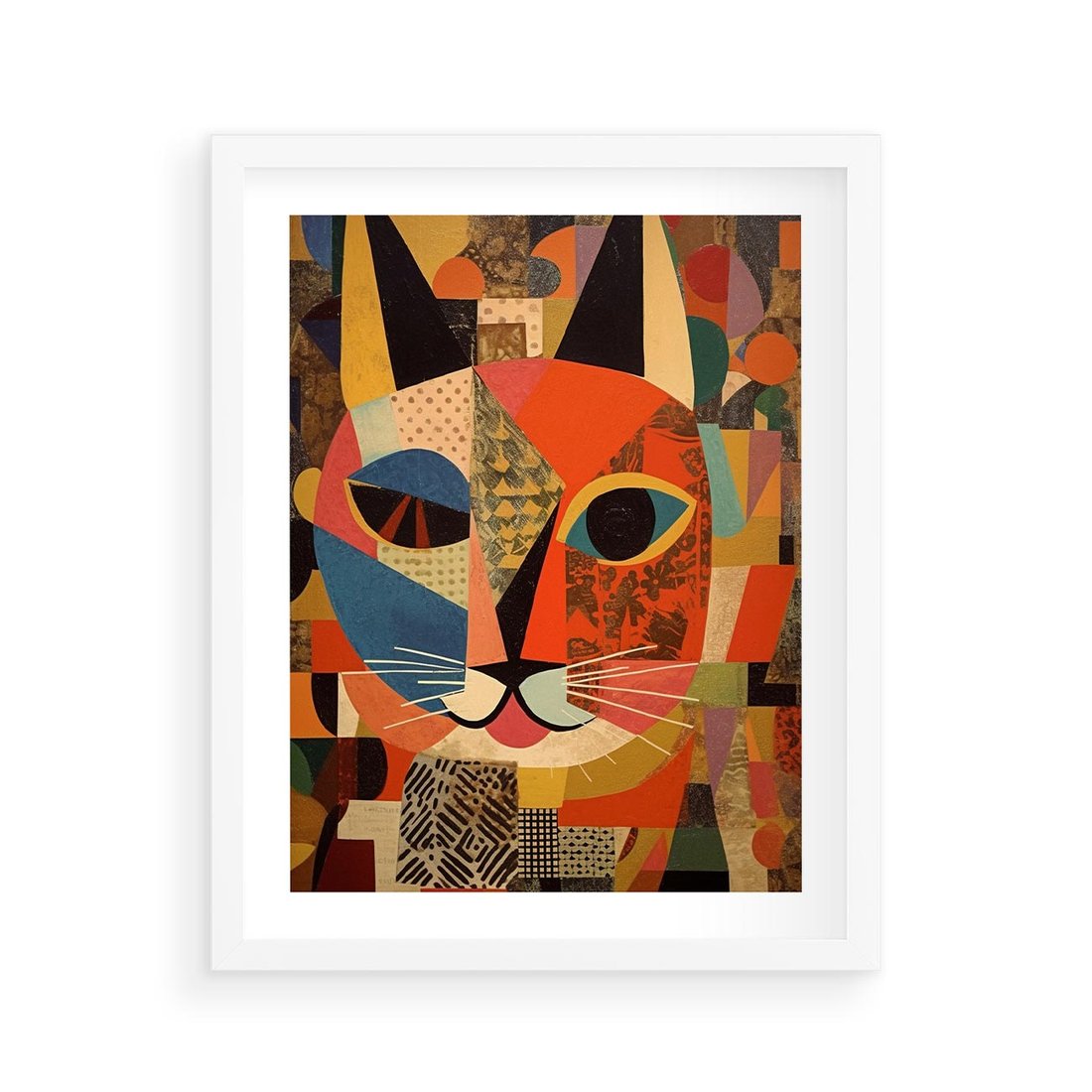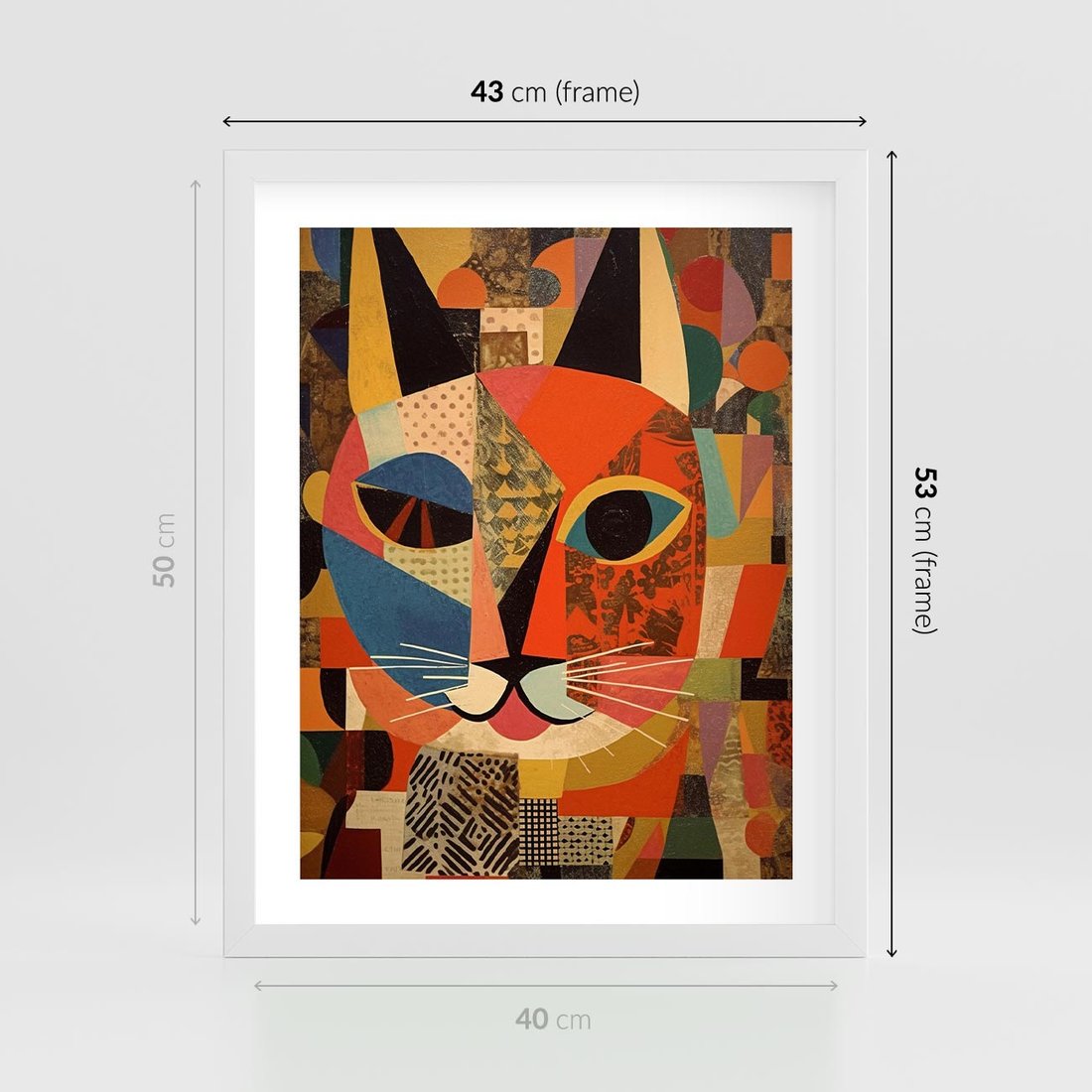 Plakat w ramie 40x50 - Impresje Nieznanych Odniesień - abstrakcyjny obraz olejny, kot - rama biała