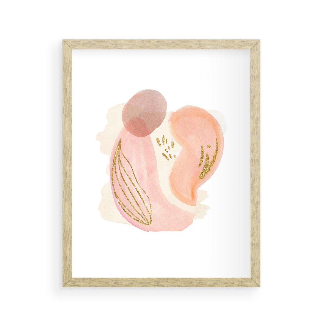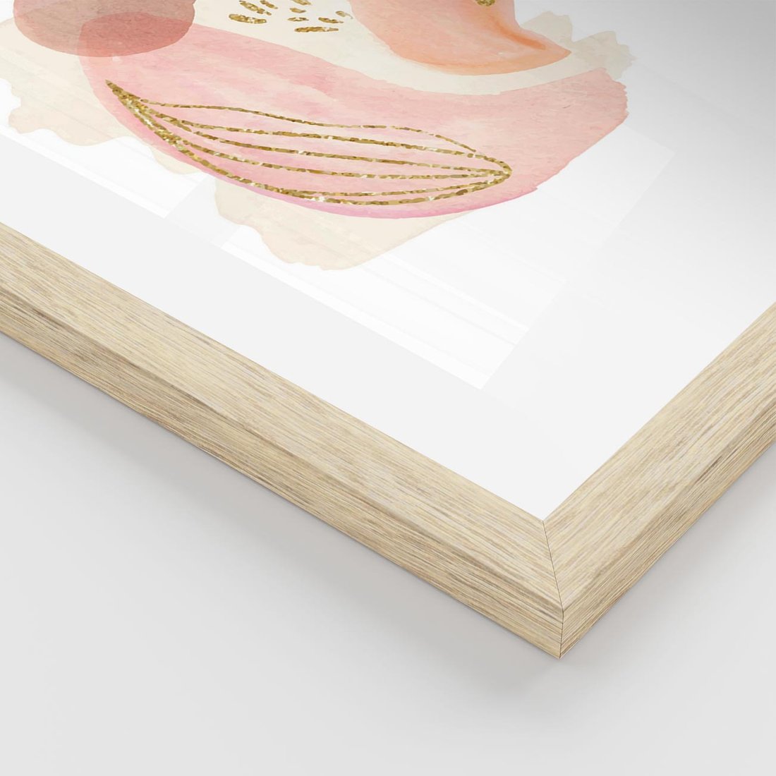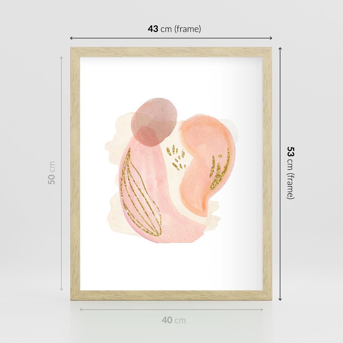 Plakat w ramie 40x50 - Impresje Przenikających Form - abstrakcyjne akwarelowe plamy, minimalizm - rama drewno