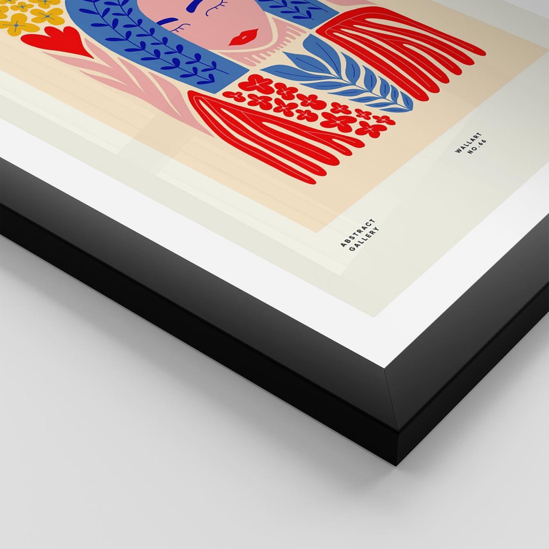 Ten nowoczesny plakat przenosi nas w świat kobiecej abstrakcji, wzbogaconej wyrazistymi kolorami. Sztuka ta emanuje siłą i wyrafinowaniem, tworząc inspirującą przestrzeń pełną wyjątkowej ekspresji.