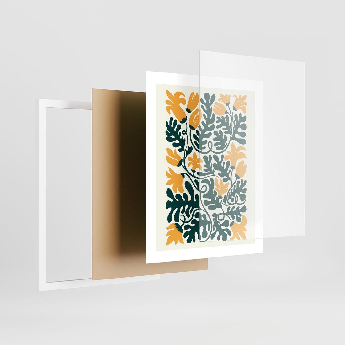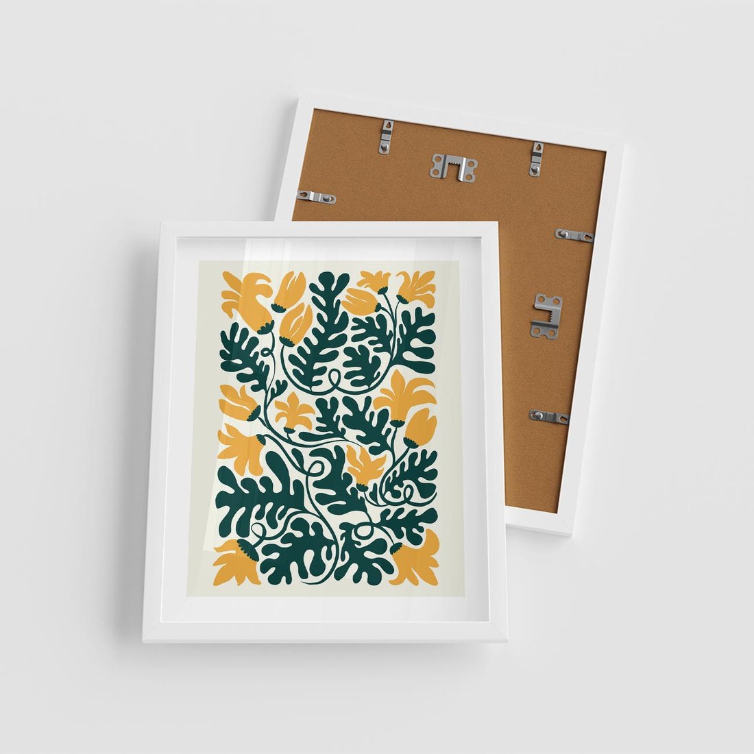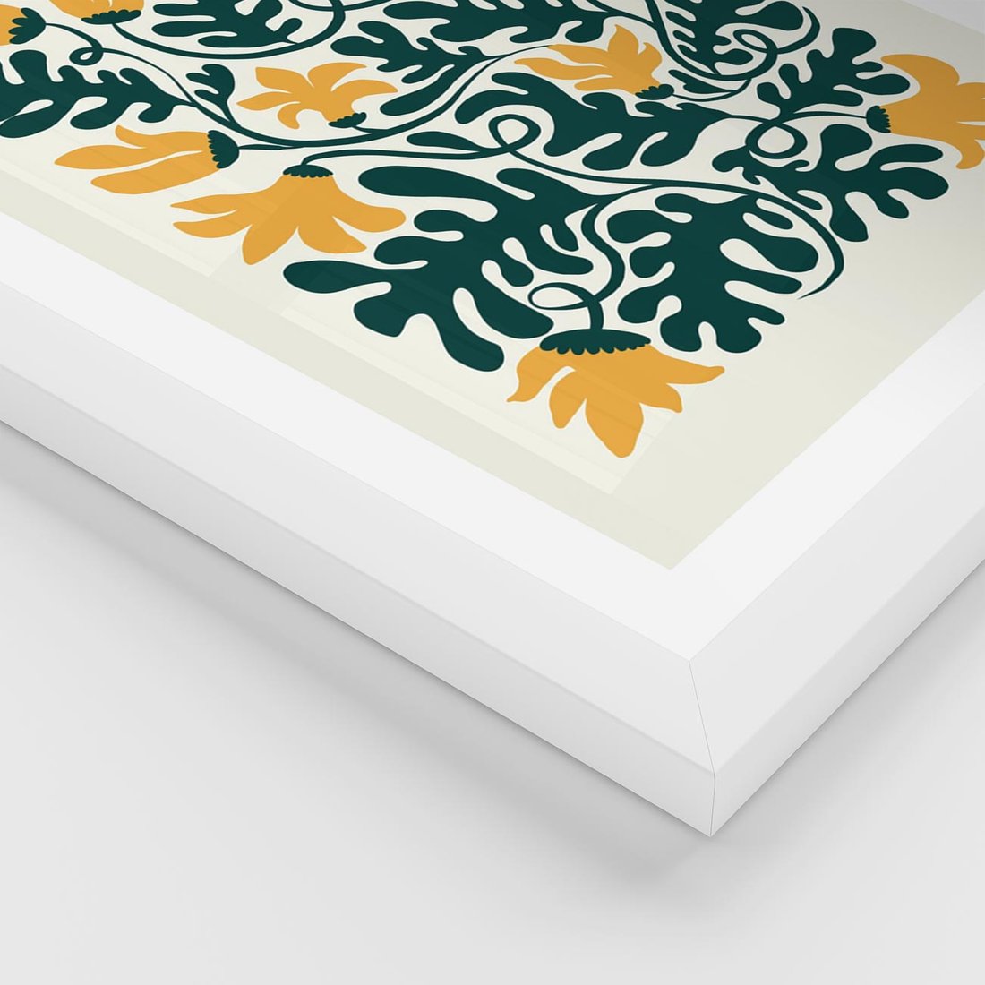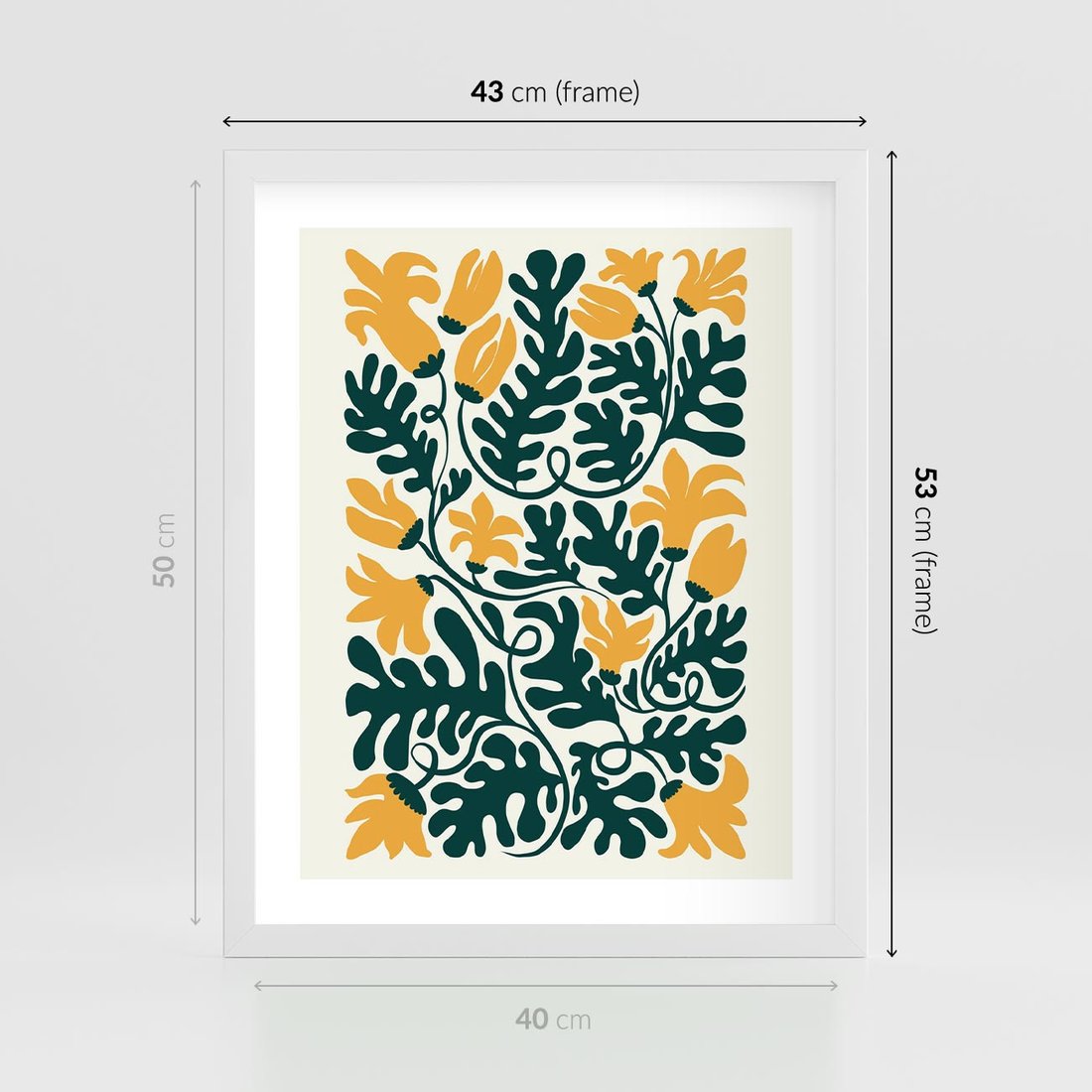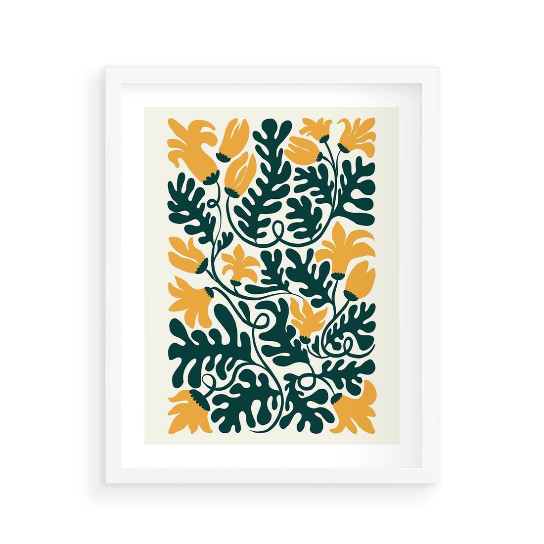 Plakat w ramie 40x50 - Impulsy Kreatywności - abstrakcyjne żółte kwiaty, kompozycja - rama biała