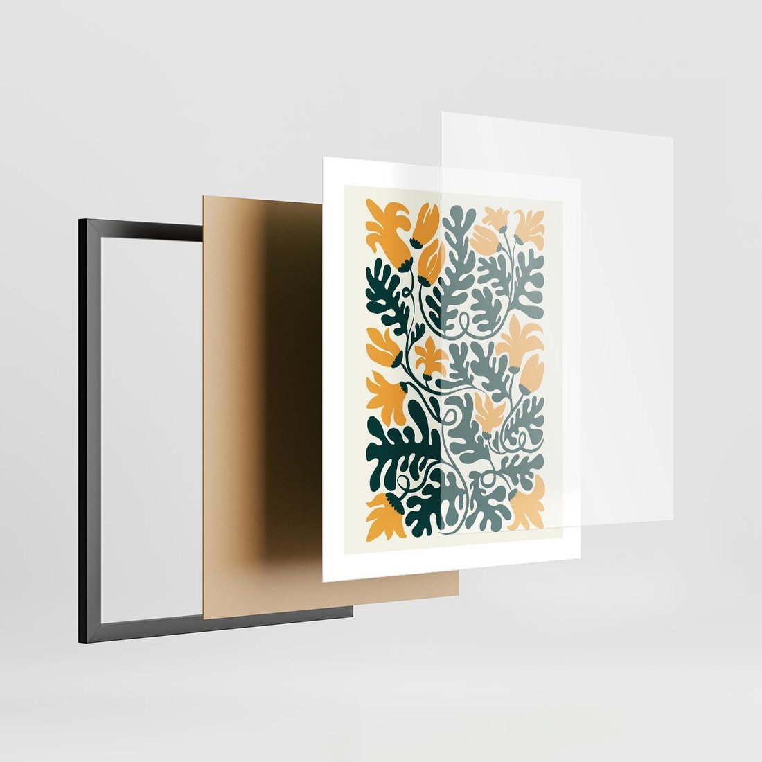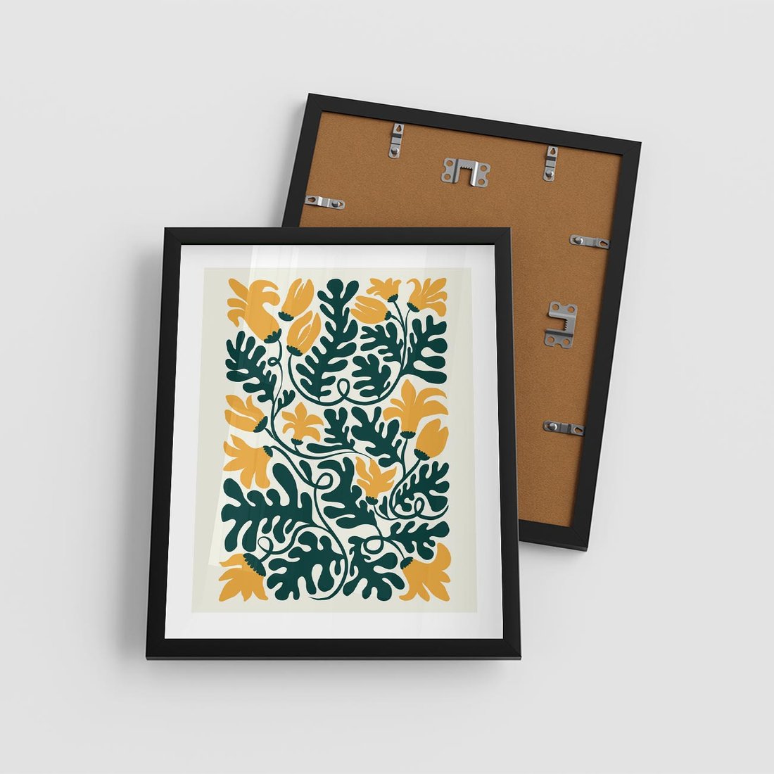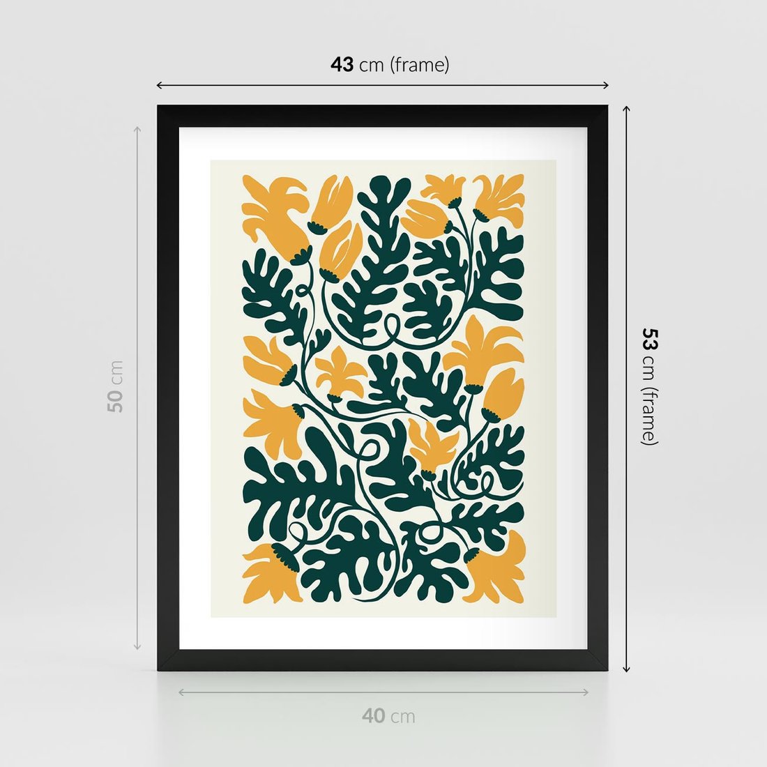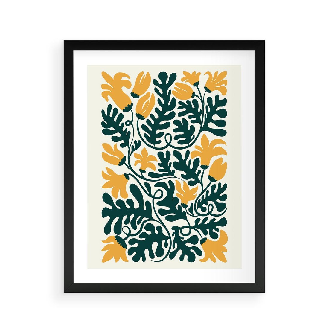 Plakat w ramie 40x50 - Impulsy Kreatywności - abstrakcyjne żółte kwiaty, kompozycja - rama czarna