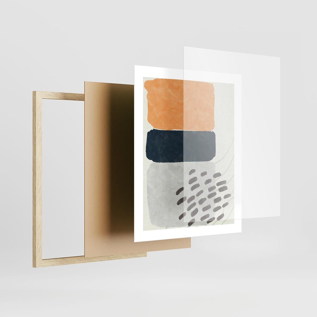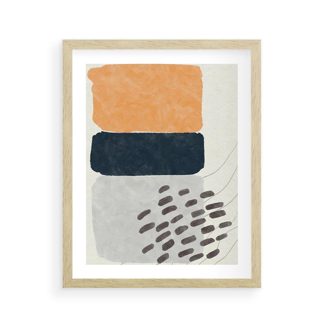 Nasz plakat to połączenie geometrycznych elementów i stonowanych kolorów, tworząc minimalistyczną abstrakcję w duchu sztuki nowoczesnej. To hołd dla minimalizmu, który wprowadzi do Twojej przestrzeni subtelność i nowoczesność w jednym.