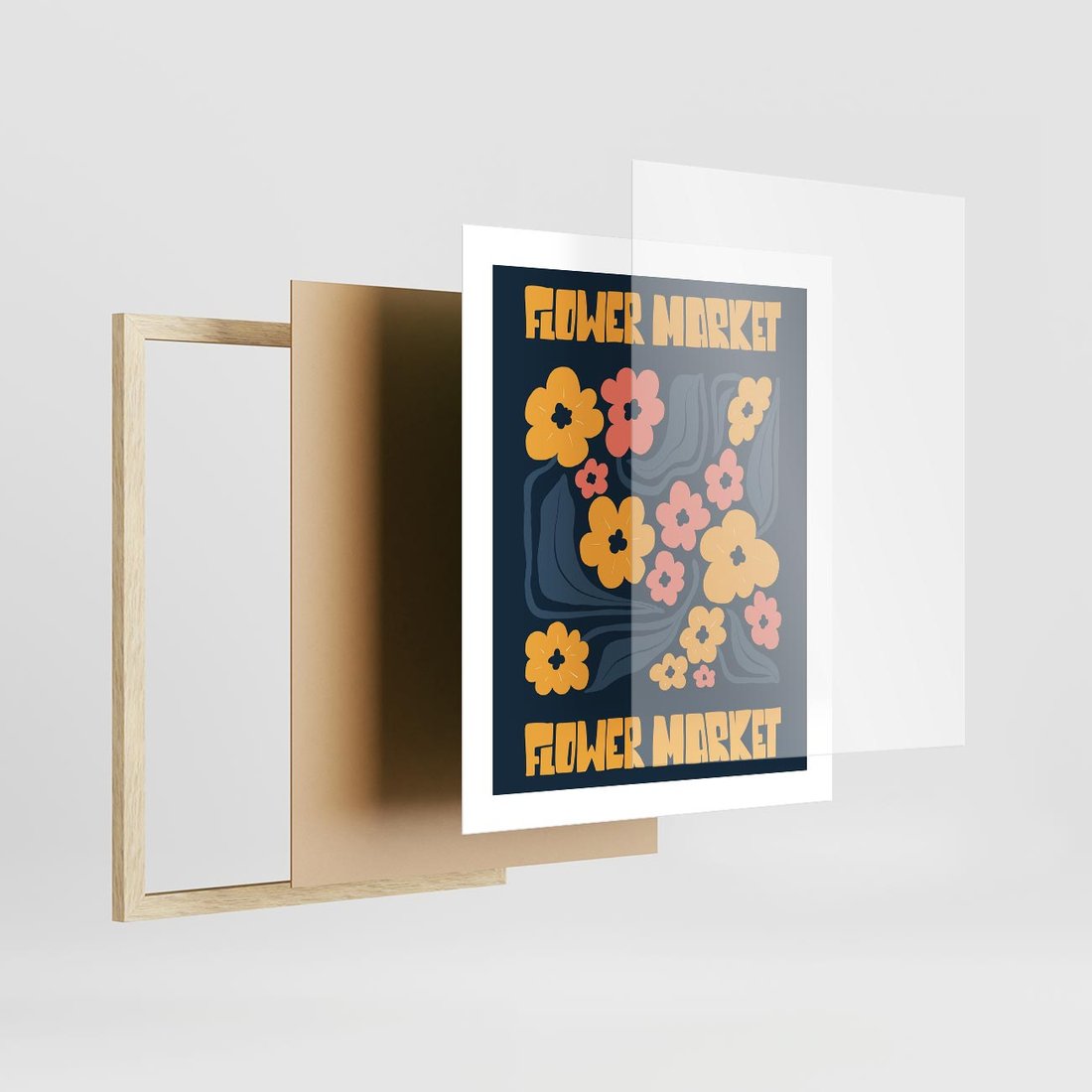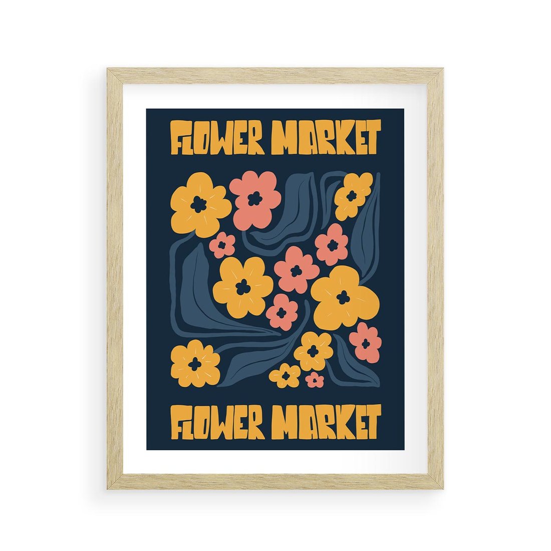 Ten plakat emanuje elegancją dzięki granatowemu tłu, na którym kontrastują wyraziste żółte kwiaty. Dominująca typografia dodaje charakteru, tworząc kompozycję pełną siły i piękna.