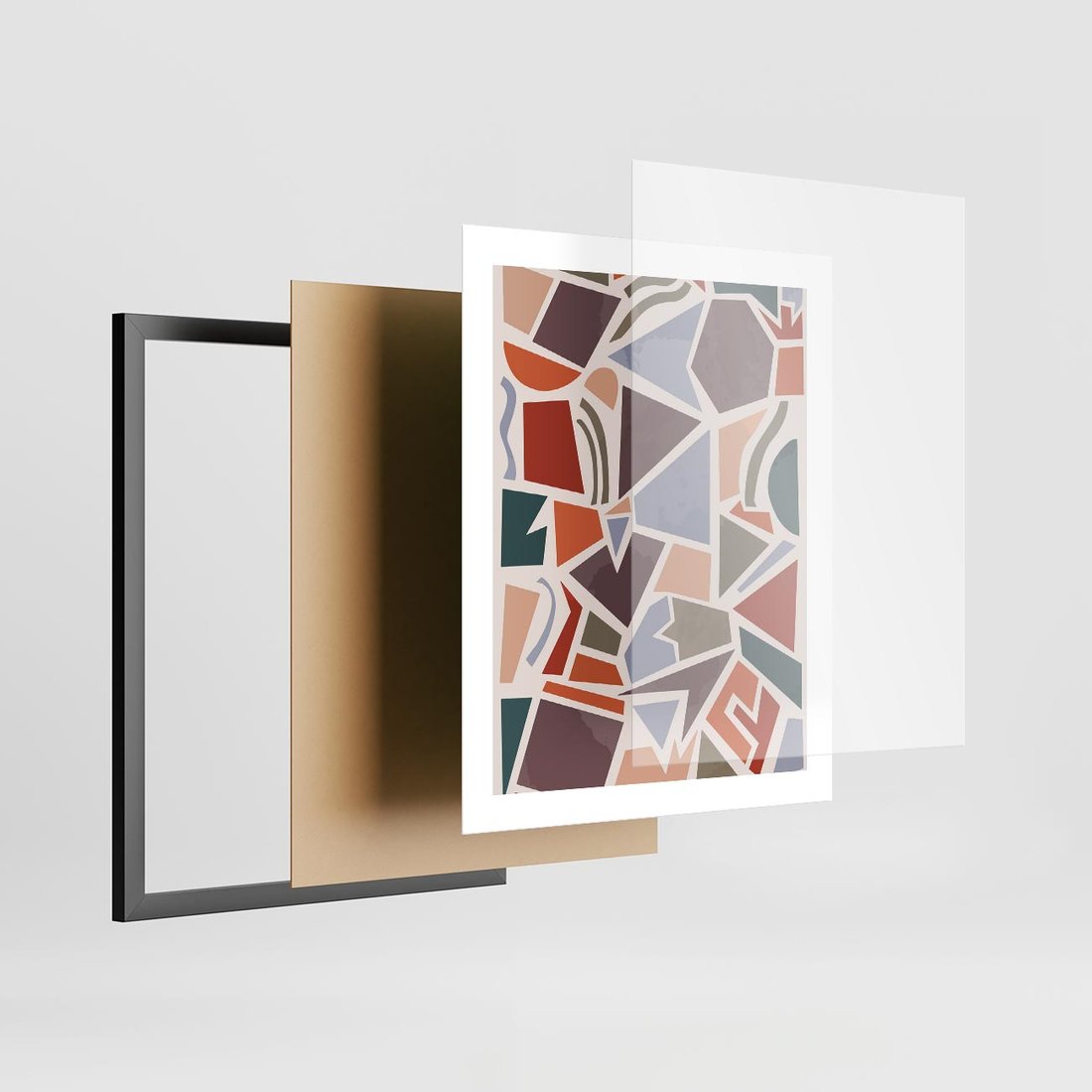 Ten nowoczesny plakat przedstawia geometryczne kształty układające się w mozaikę z różnokolorowych elementów. To połączenie abstrakcji i geometrycznego wzoru wprowadza do Twojej przestrzeni nowoczesność i oryginalność, tworząc jednocześnie interesujący akcent artystyczny.