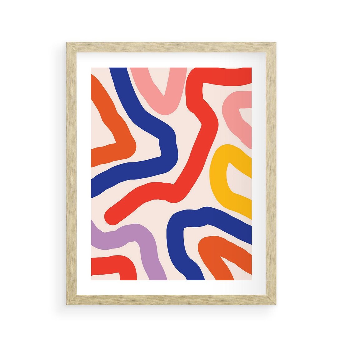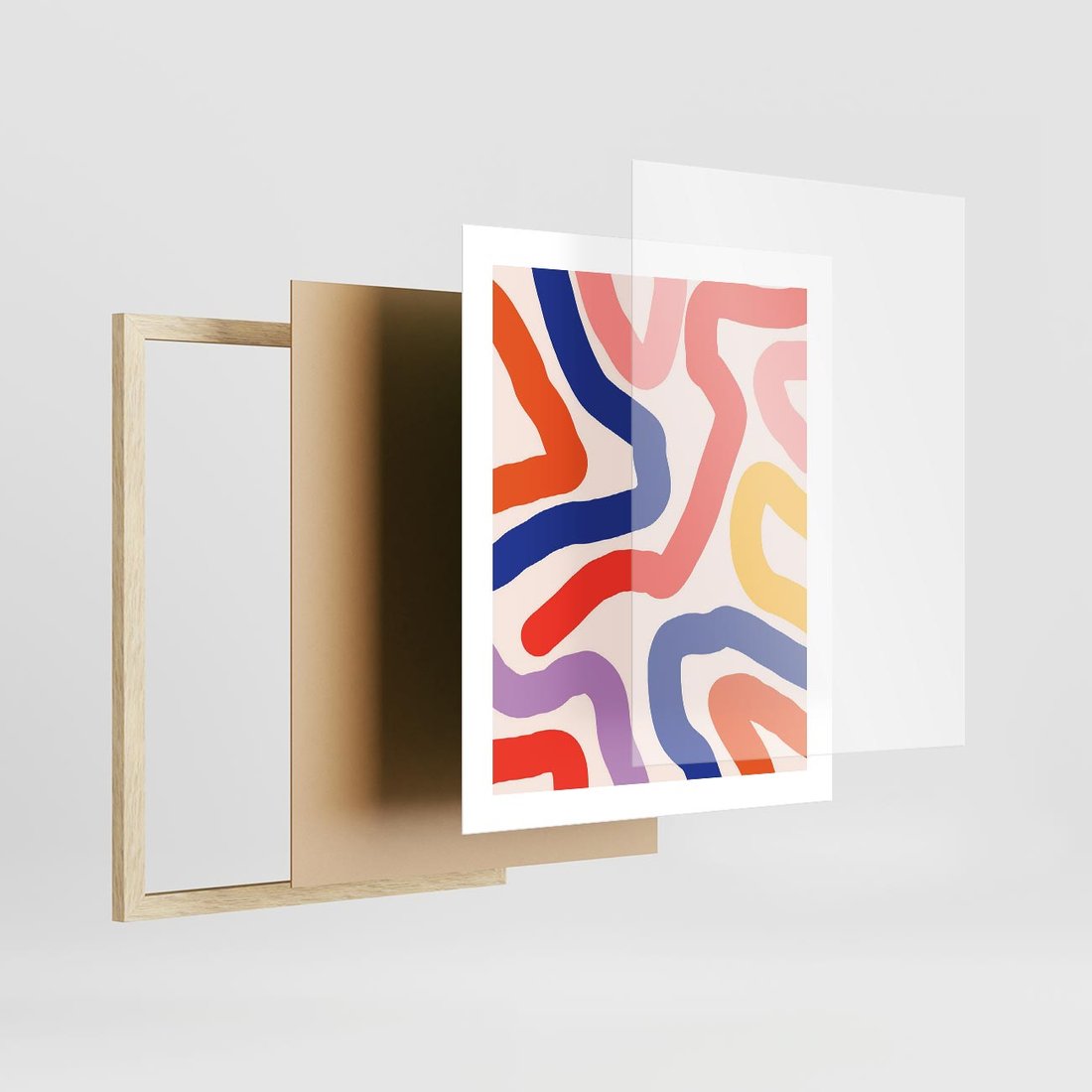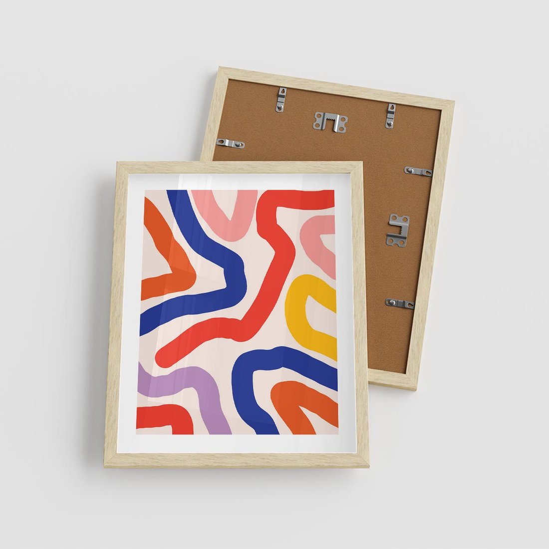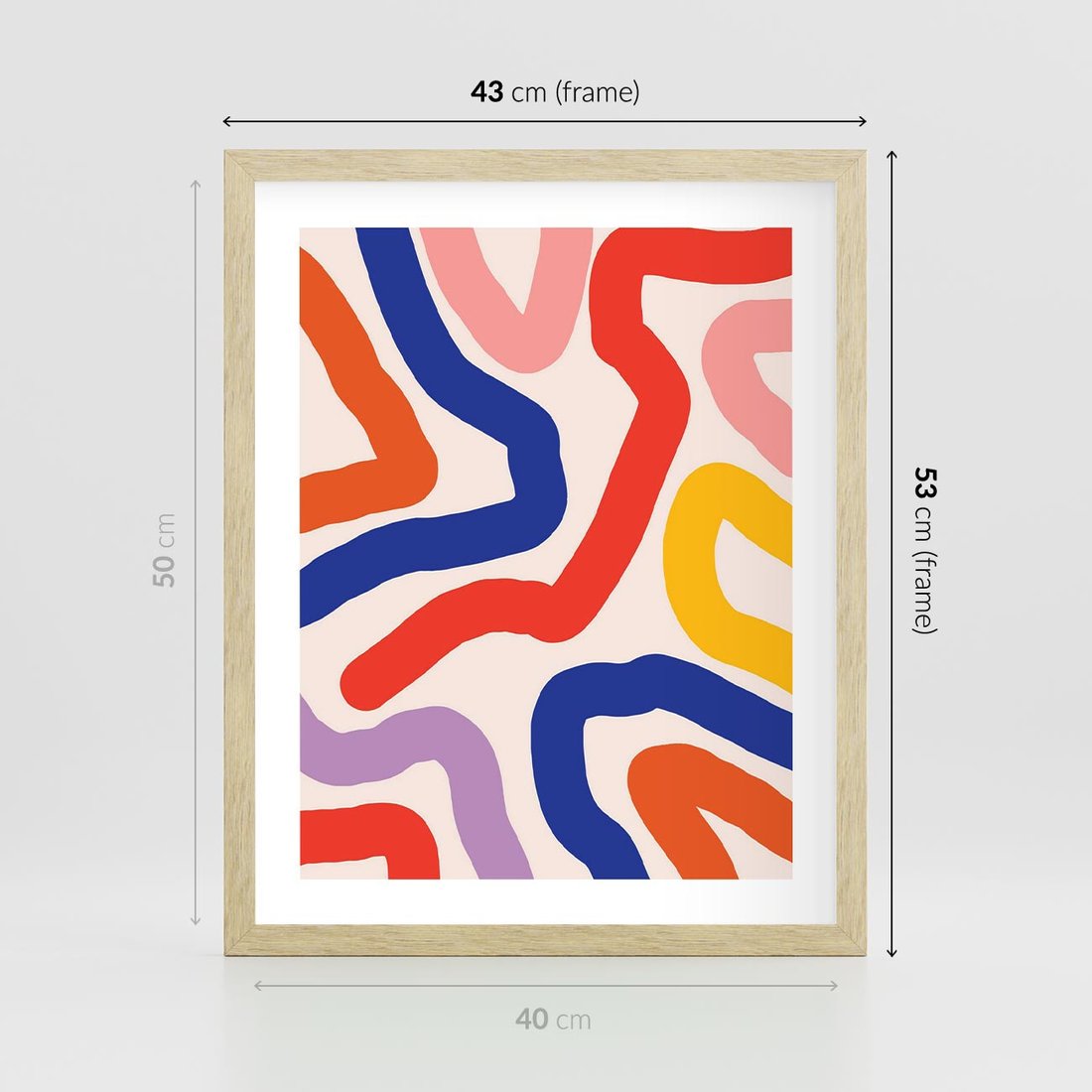 Plakat w ramie 40x50 - Intrygujące Widzenia - abstrakcyjny kolorowy obraz, kolorowe linie - rama drewno