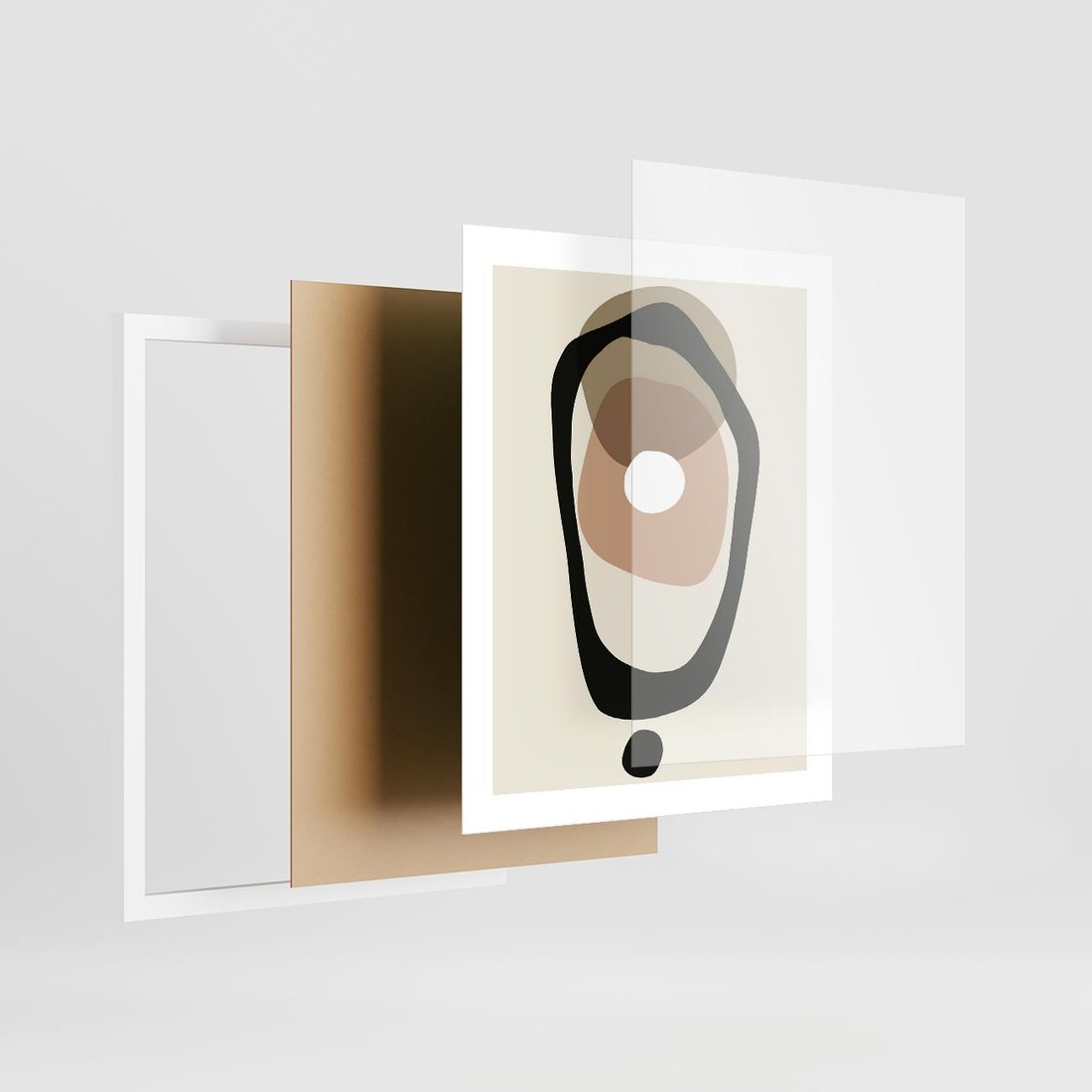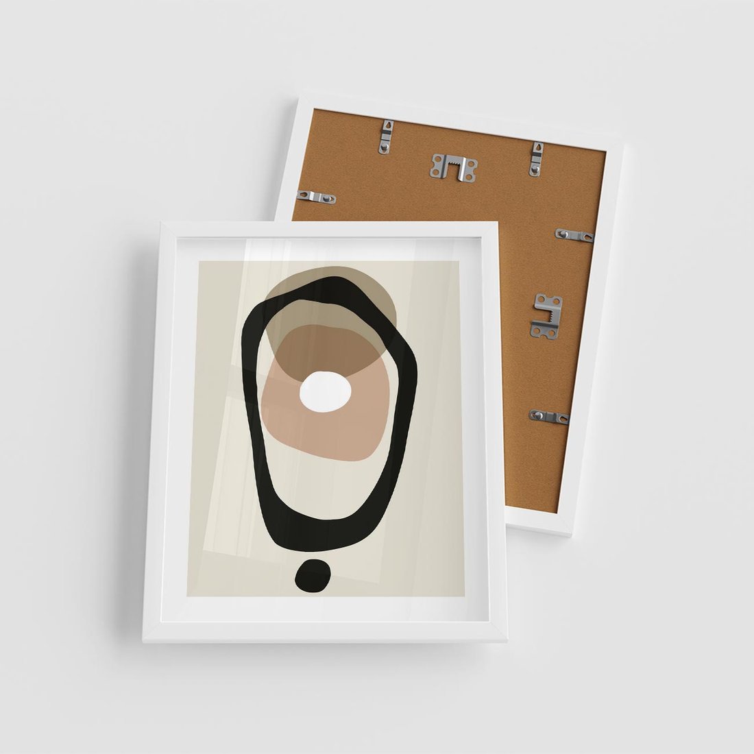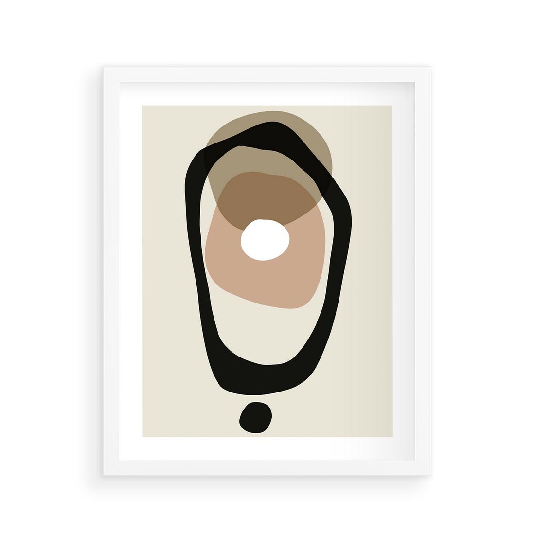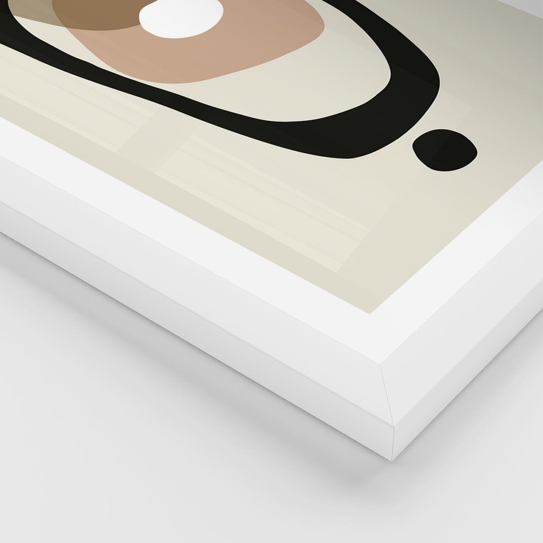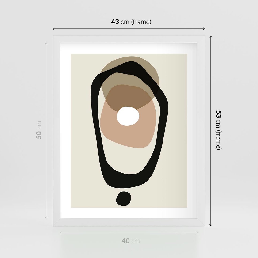 Plakat w ramie 40x50 - Intrygujące Zaskoczenia - beżowa abstrakcyjna kompozycja, czarny akcent - rama biała