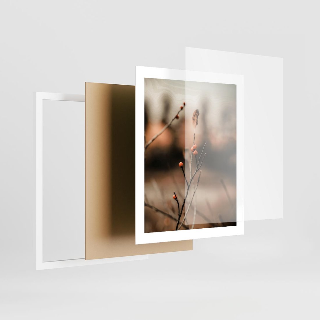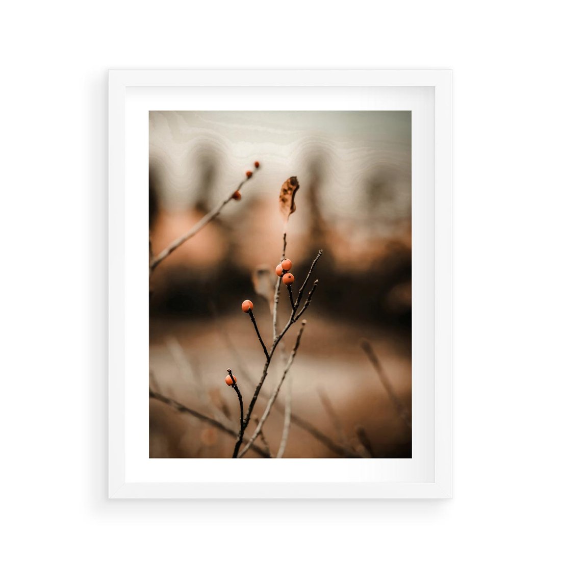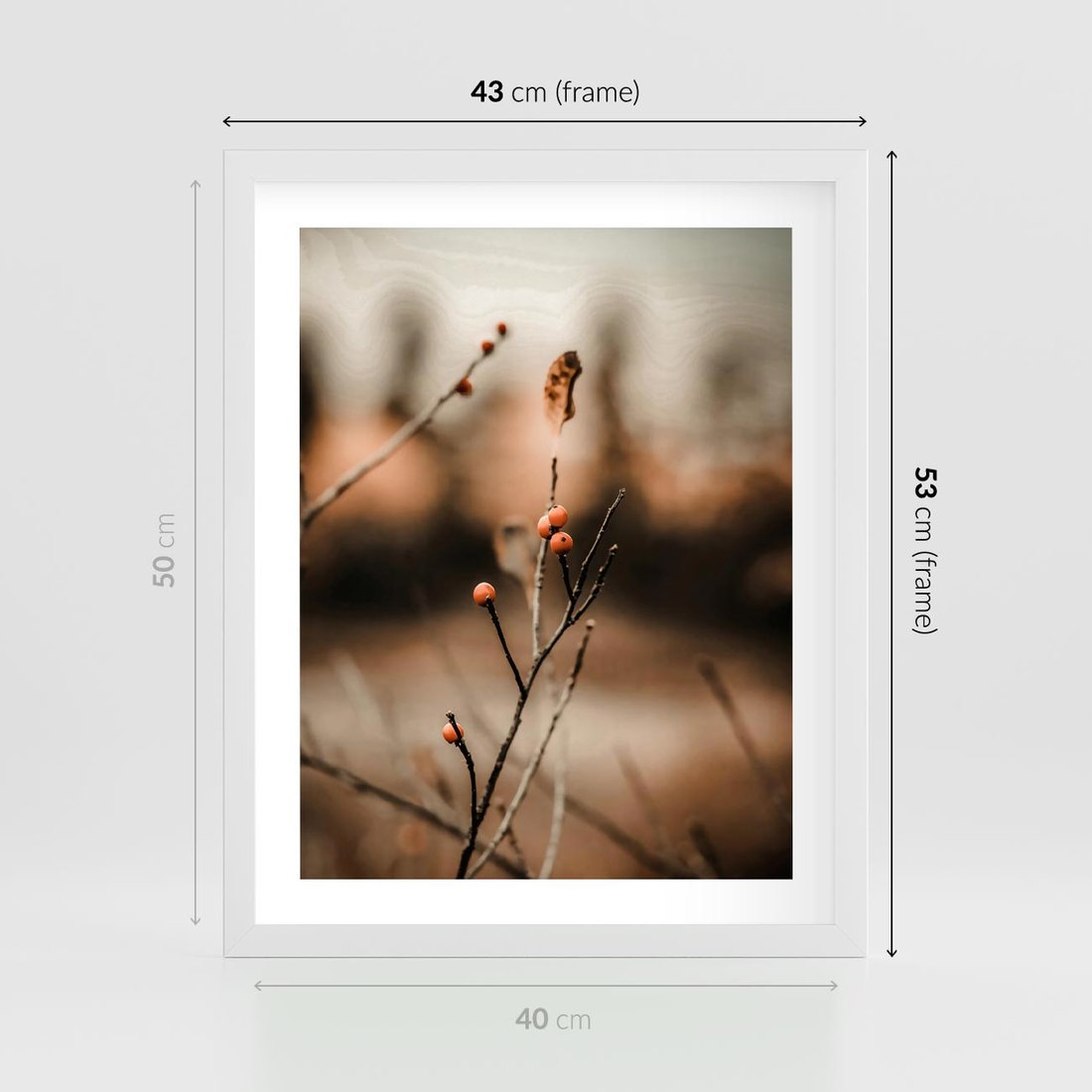 Plakat w ramie 40x50 - Jarzębina w Pejzażu - jesień, gałązka - rama biała