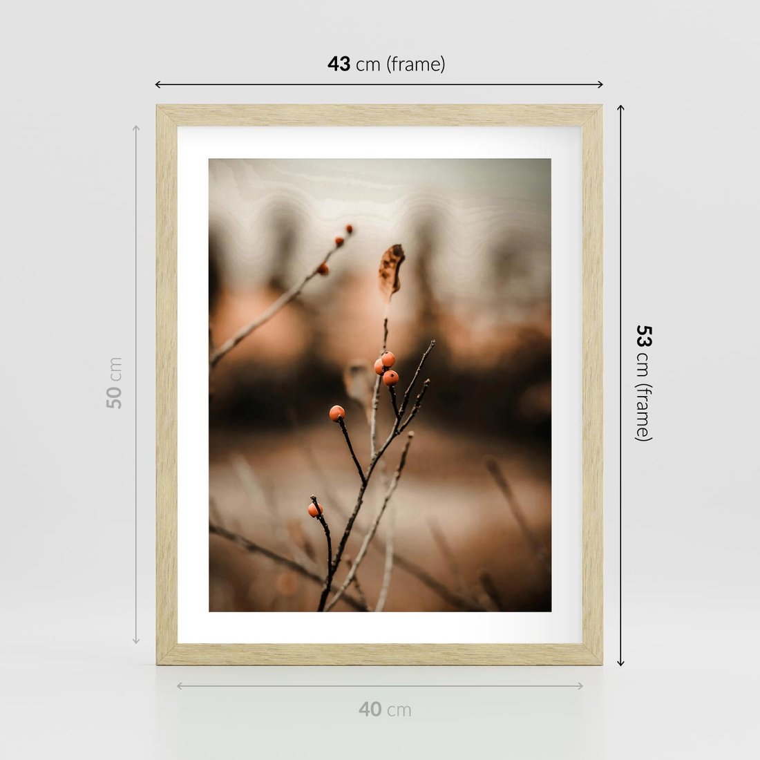 Plakat w ramie 40x50 - Jarzębina w Pejzażu - jesień, gałązka - rama drewno