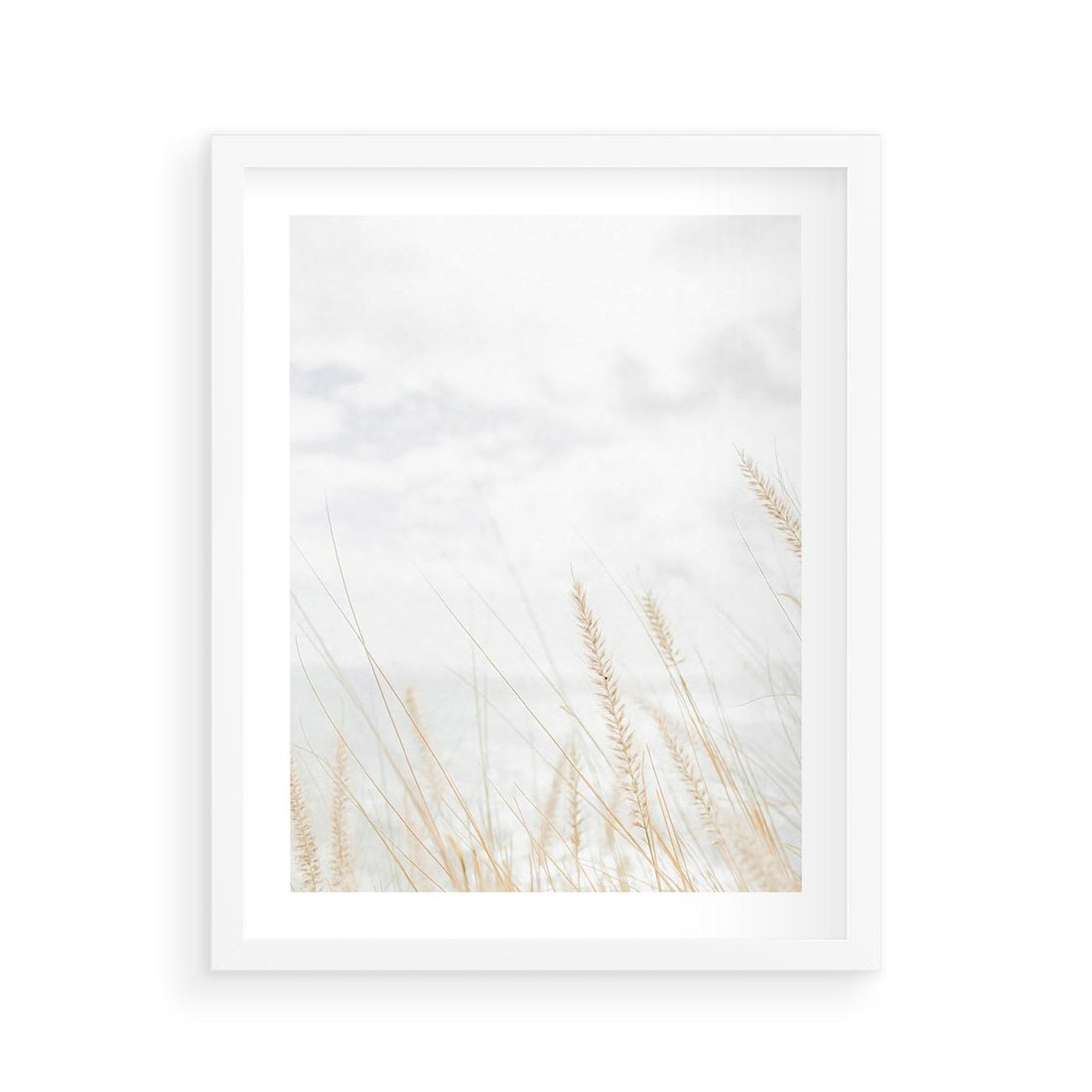 Plakat w ramie 40x50 - Jasna Delikatność: Fotografia Suchych Traw - suche trawy, jasna fotografia - rama biała