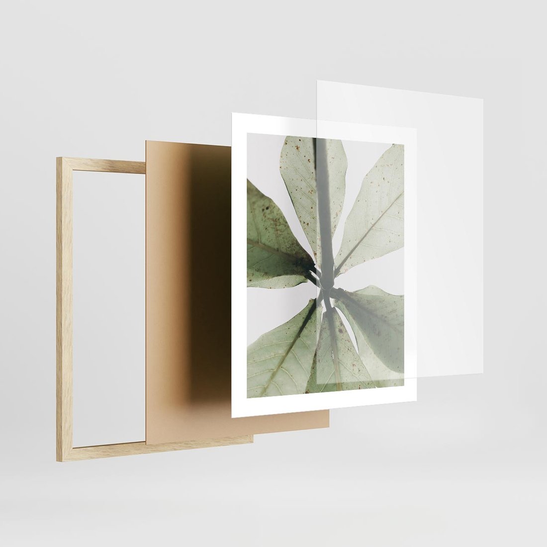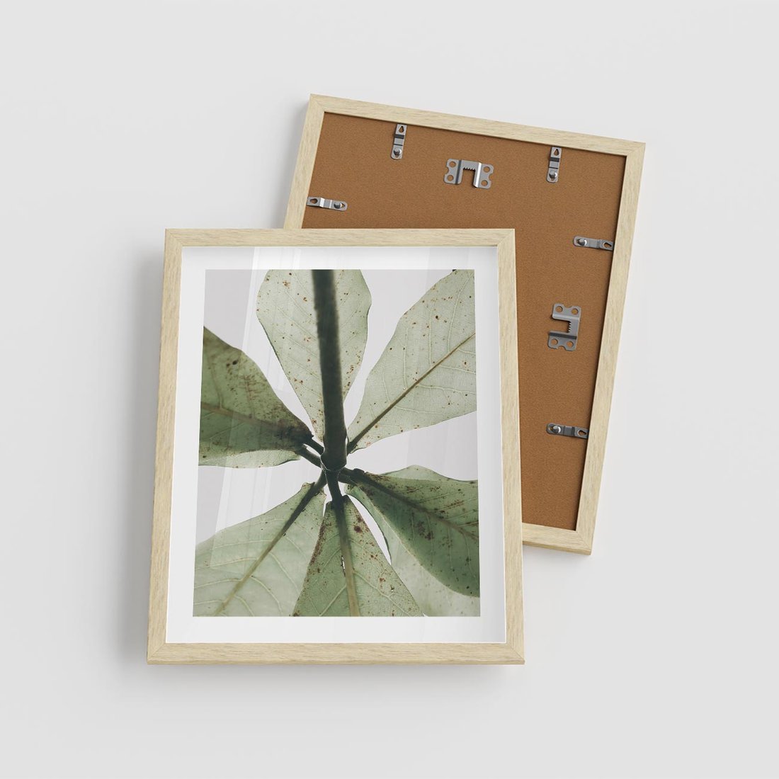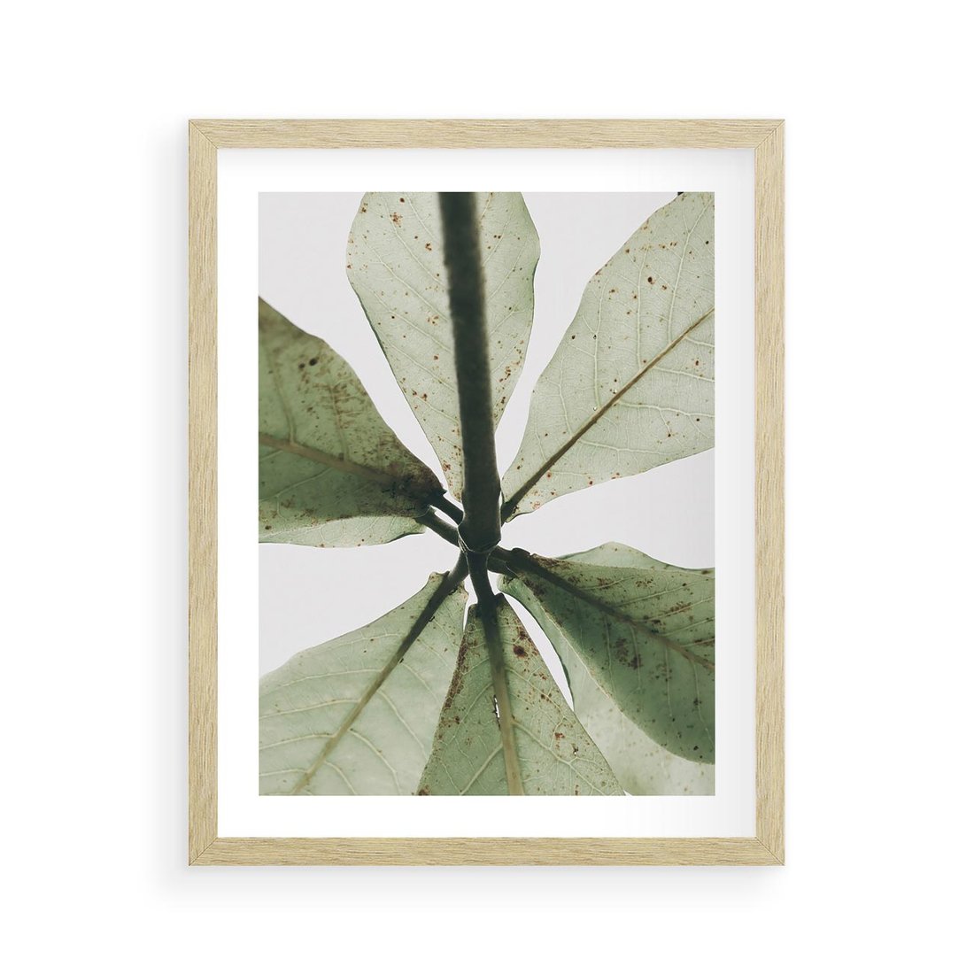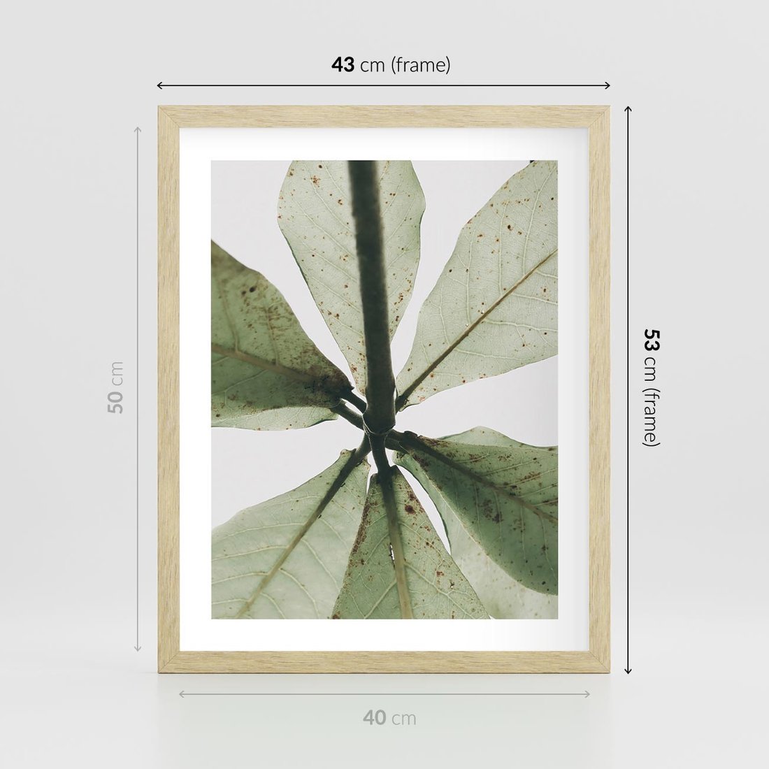 Plakat w ramie 40x50 - Jasna Zieleń w Makro - makro zdjęcie liści, jasna zieleń - rama drewno