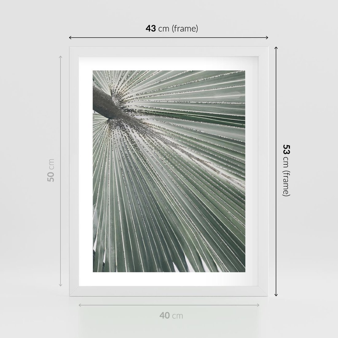 Plakat w ramie 40x50 - Jasnozielony Świat - palma, liść - rama biała