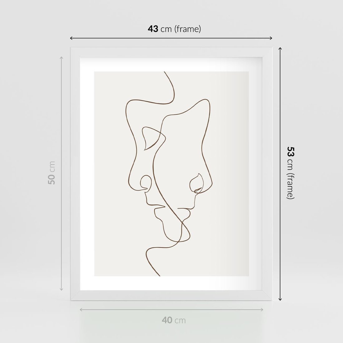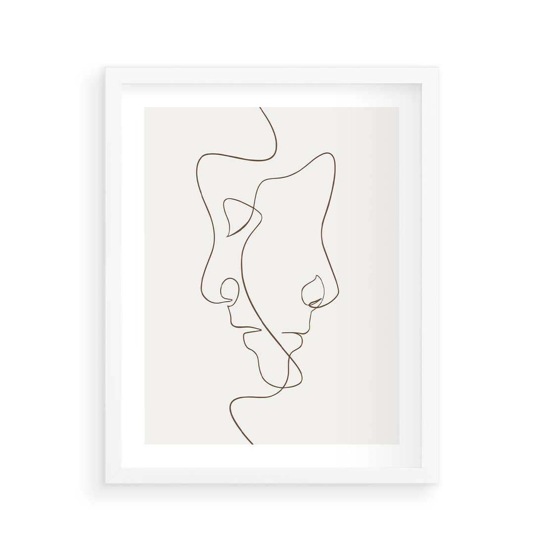 Plakat w ramie 40x50 - Jedna Linia, Dwie Twarze - minimalistyczny plakat, dwie twarze - rama biała