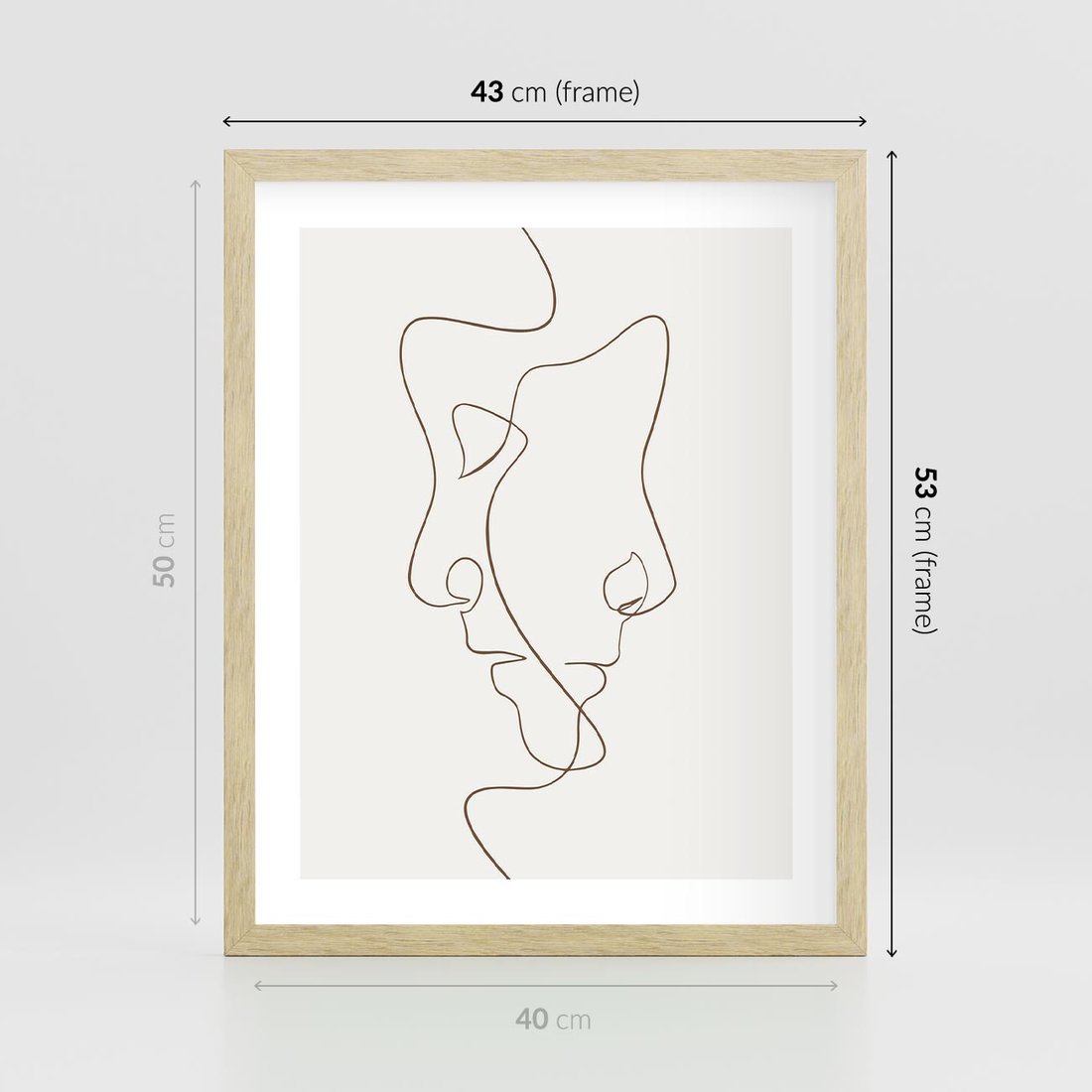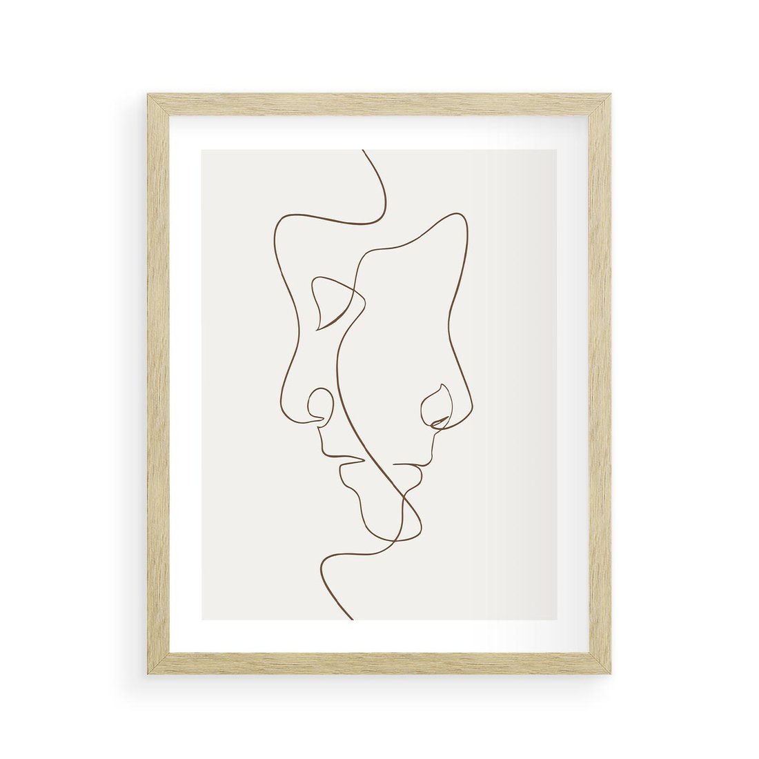 Plakat w ramie 40x50 - Jedna Linia, Dwie Twarze - minimalistyczny plakat, dwie twarze - rama drewno