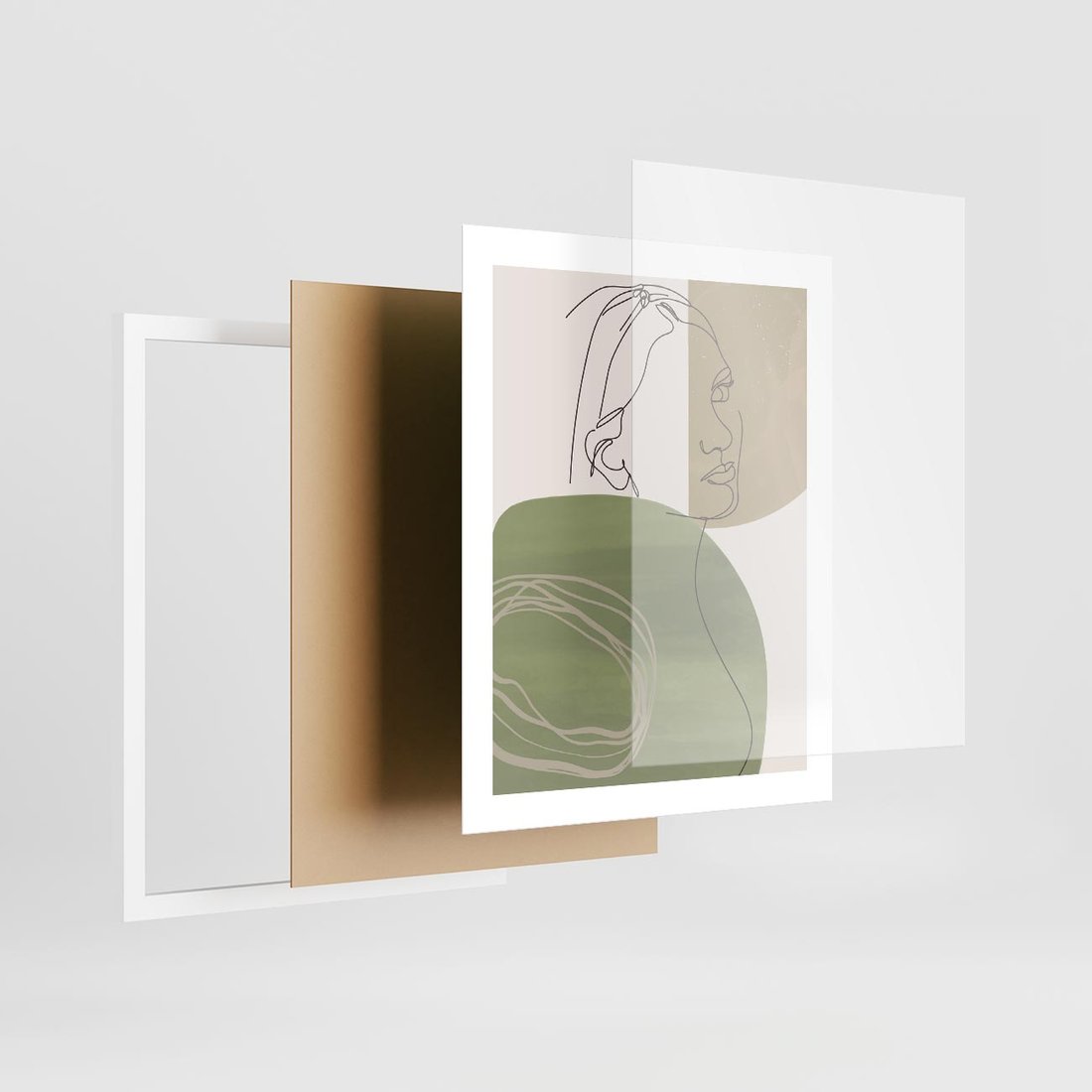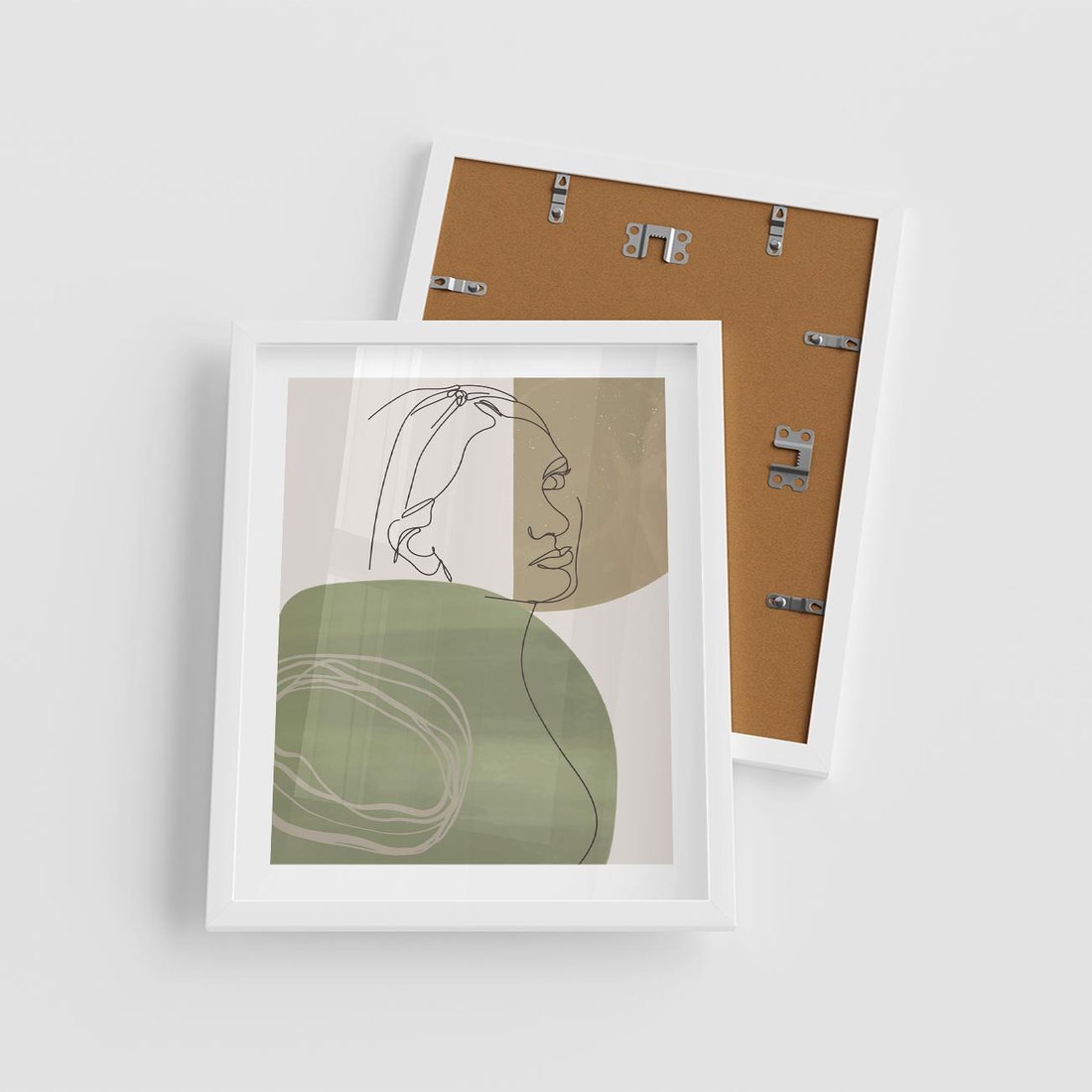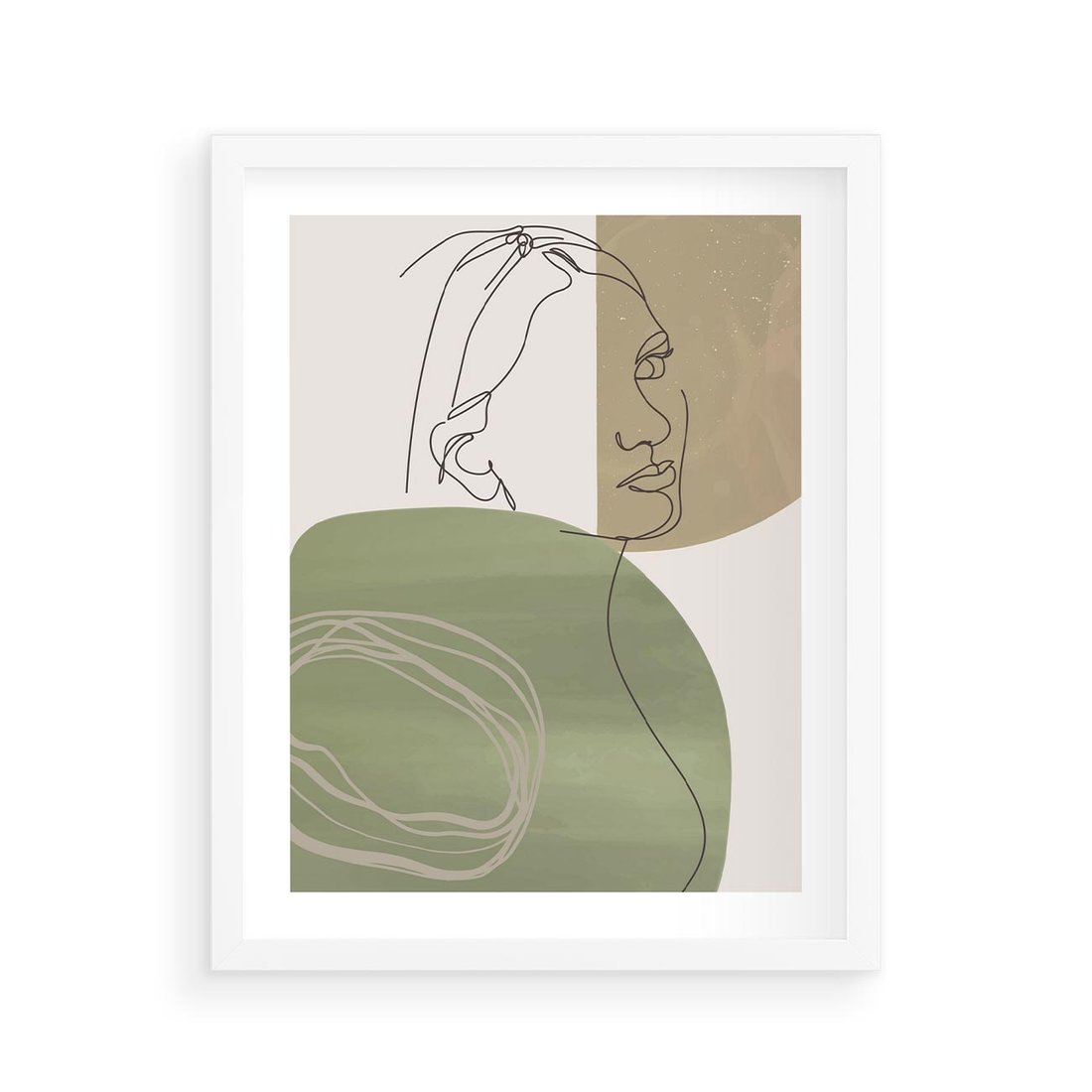 Plakat w ramie 40x50 - Jedna Linia, Wiele Emocji - akwarelowe plamy, na nich szkic postaci kobiety jedną linią - rama biała
