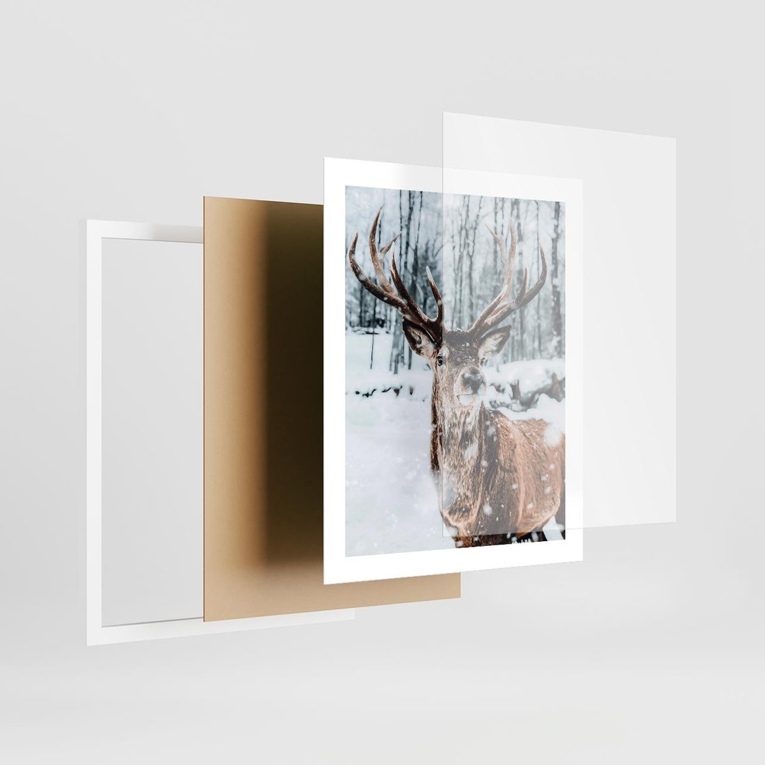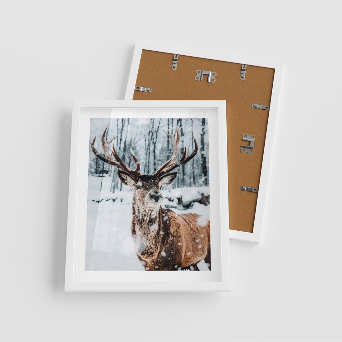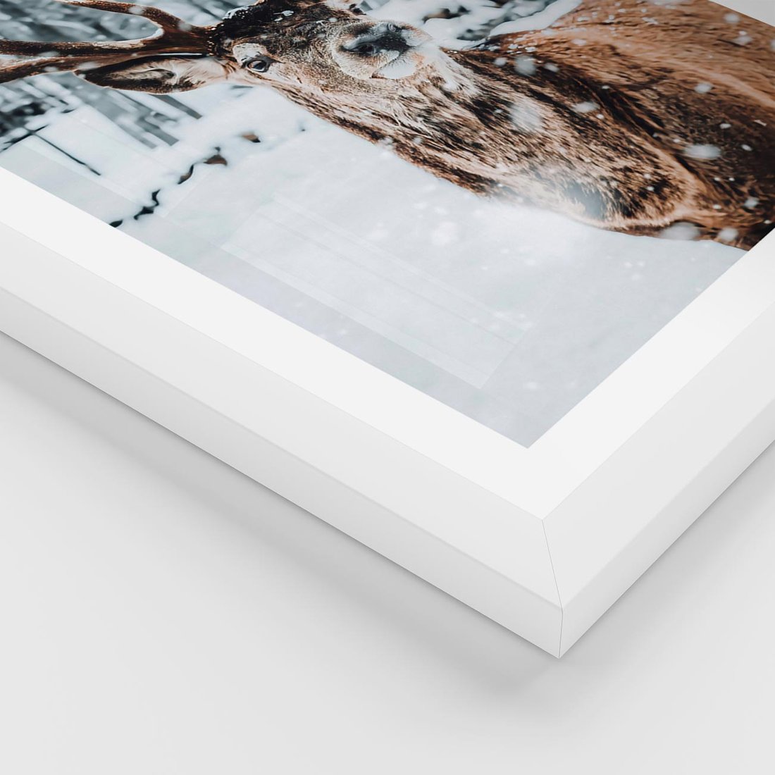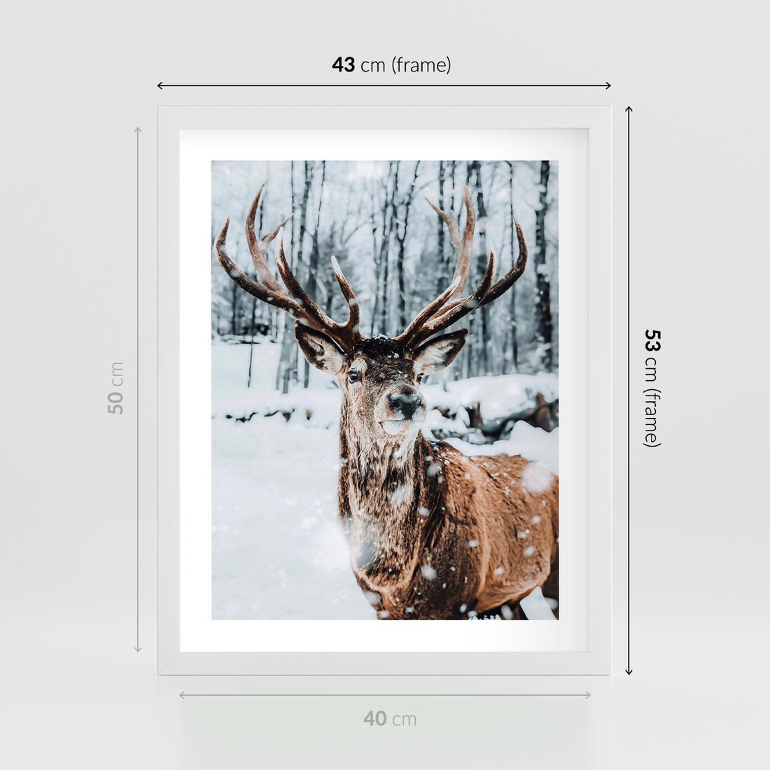 Plakat w ramie 40x50 - Jeleń na Zdjęciu pod Śniegiem - jeleń, zima - rama biała