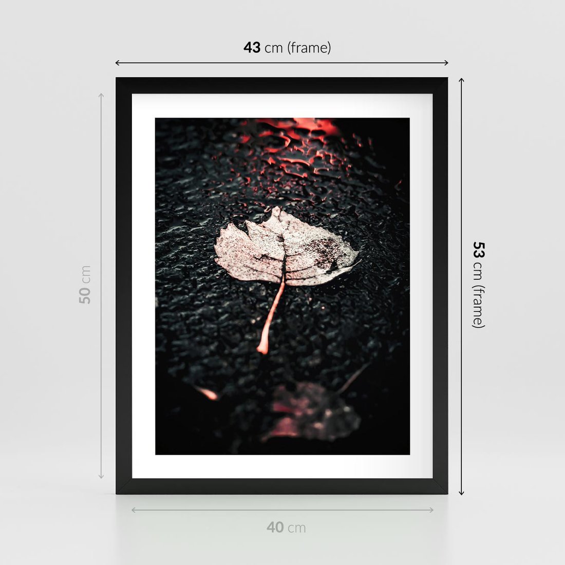 - Plakat w ramie 40x50 - Jesień w Detalu: Liść na Mokrej Drodze