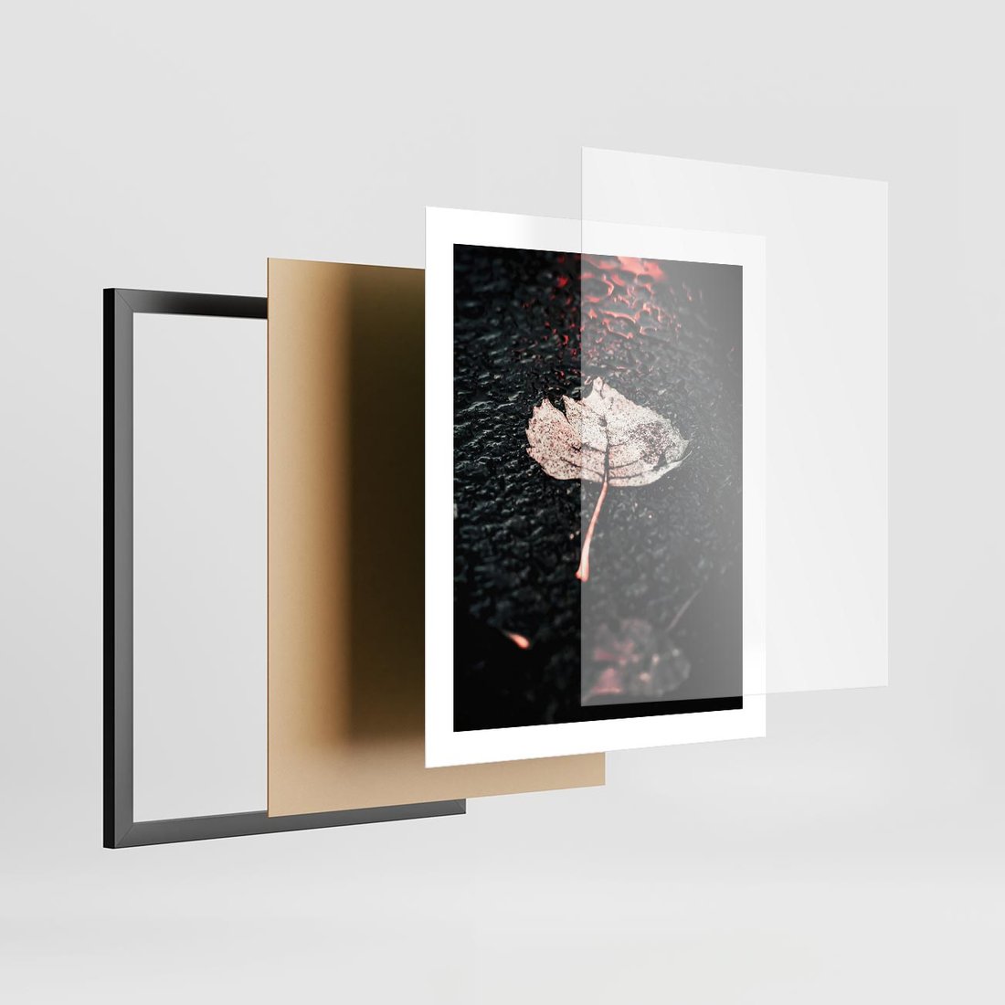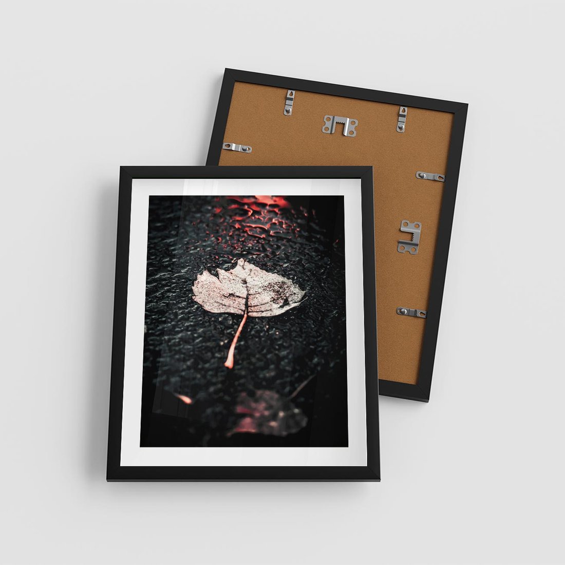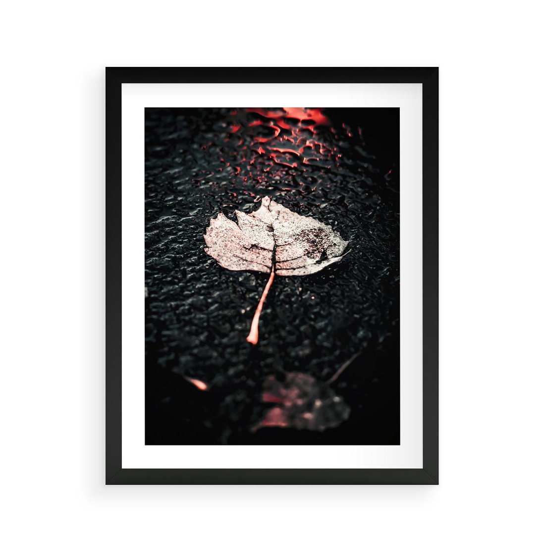 Plakat w ramie 40x50 - Jesień w Detalu: Liść na Mokrej Drodze - liść, jesień - rama czarna