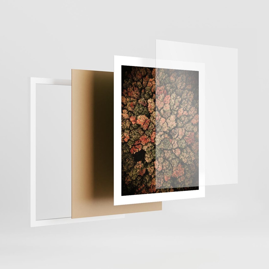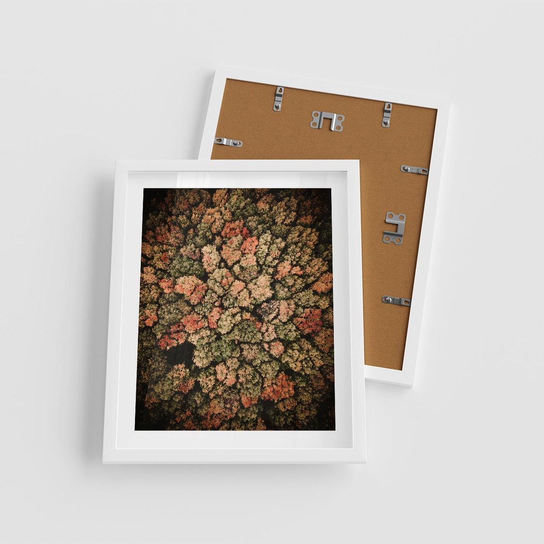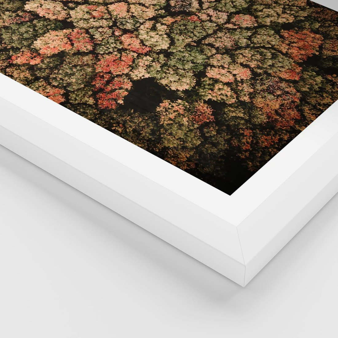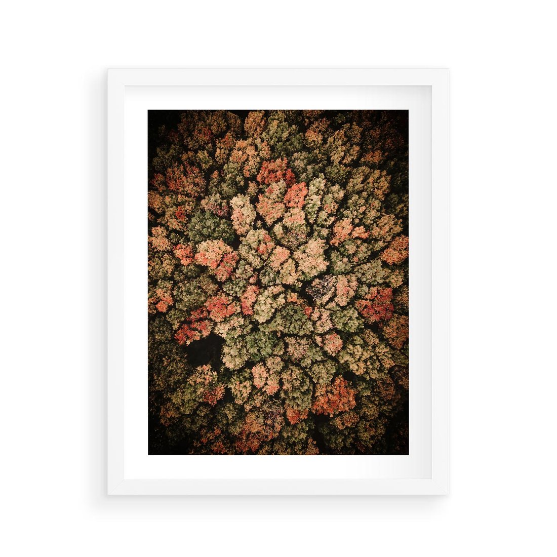 Plakat w ramie 40x50 - Jesień z Lotu Ptaka: Malowniczy Las - las jesienią z lotu ptaka - rama biała
