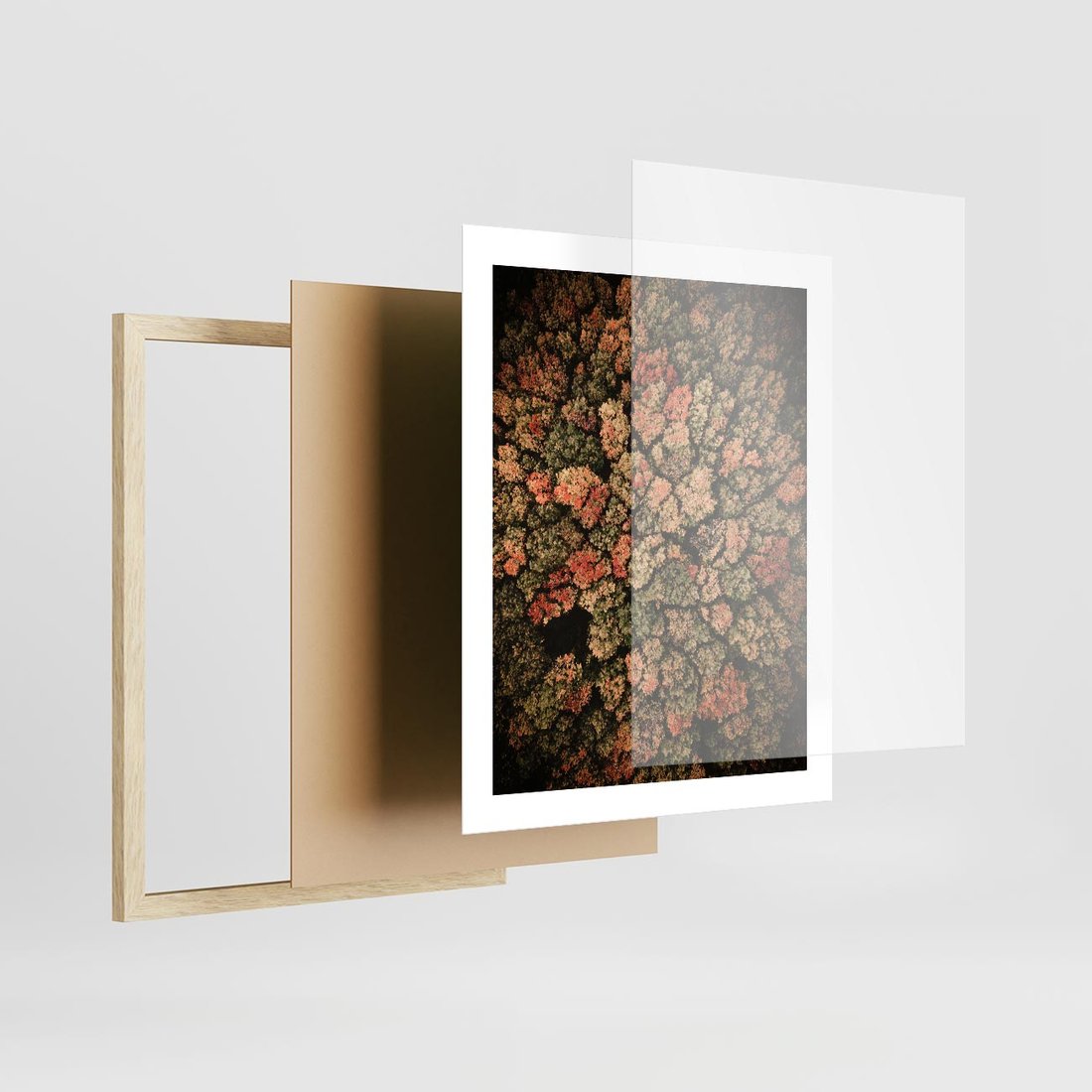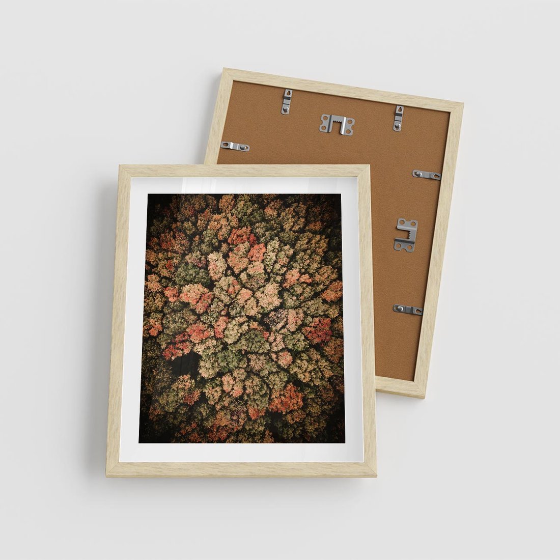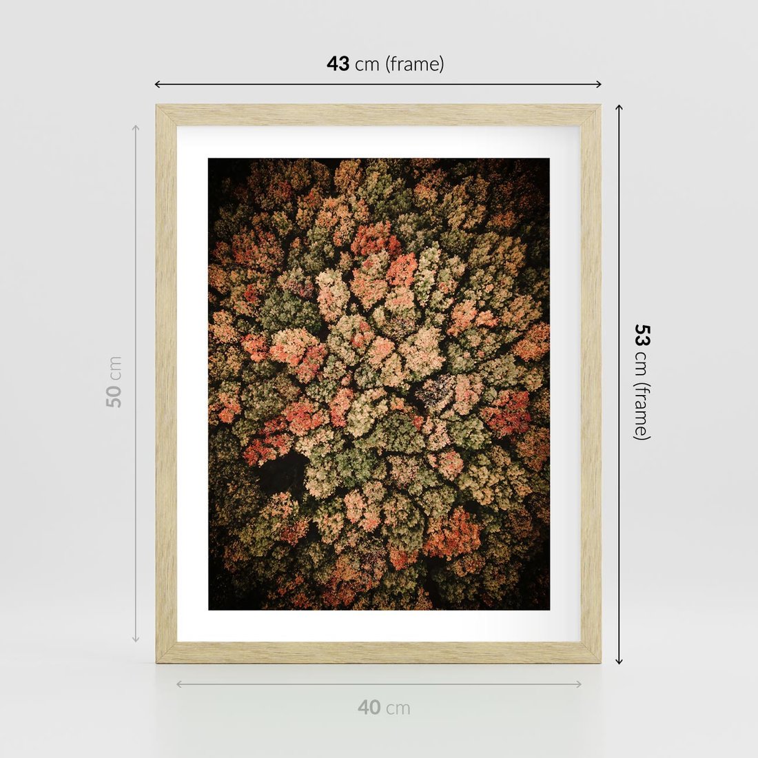Plakat w ramie 40x50 - Jesień z Lotu Ptaka: Malowniczy Las - las jesienią z lotu ptaka - rama drewno