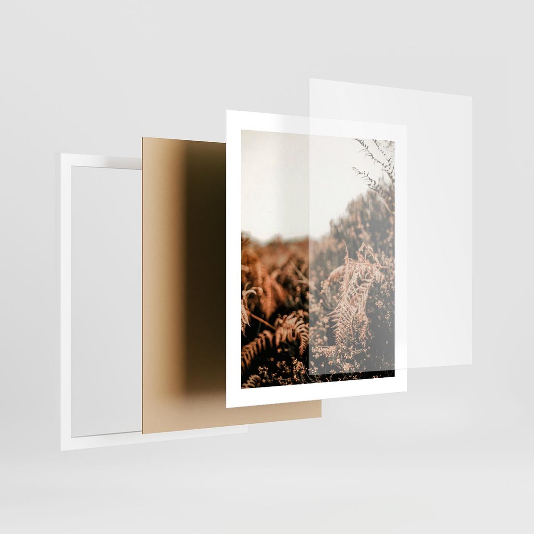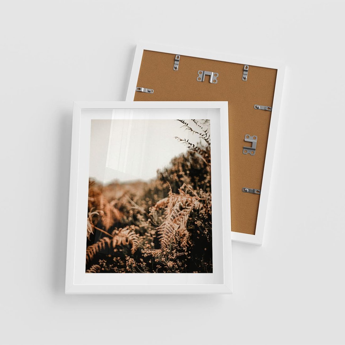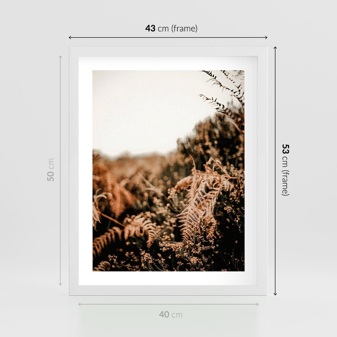 Plakat w ramie 40x50 - Jesienna Harmonia - suche paprocie, jesienny krajobraz - rama biała
