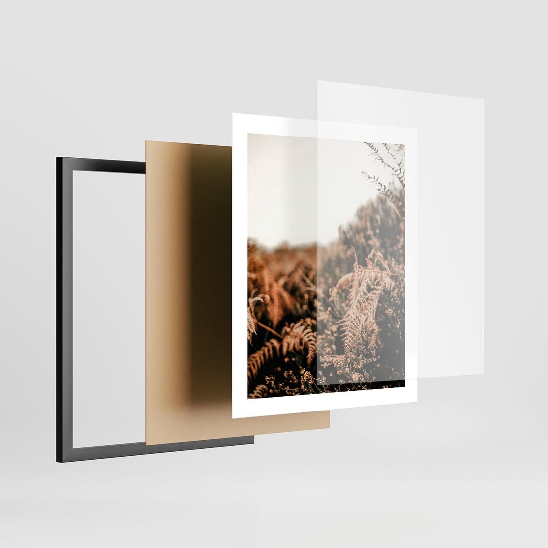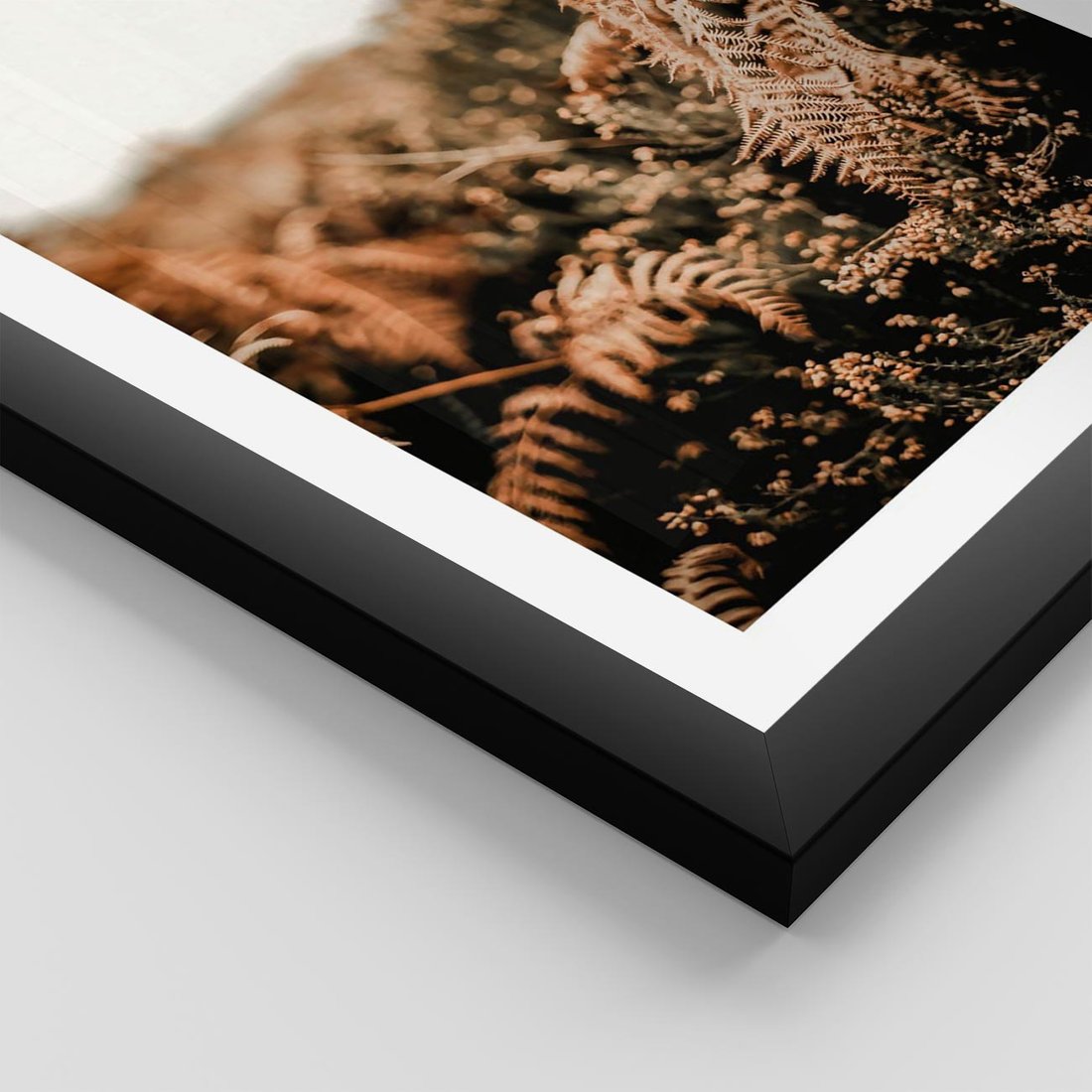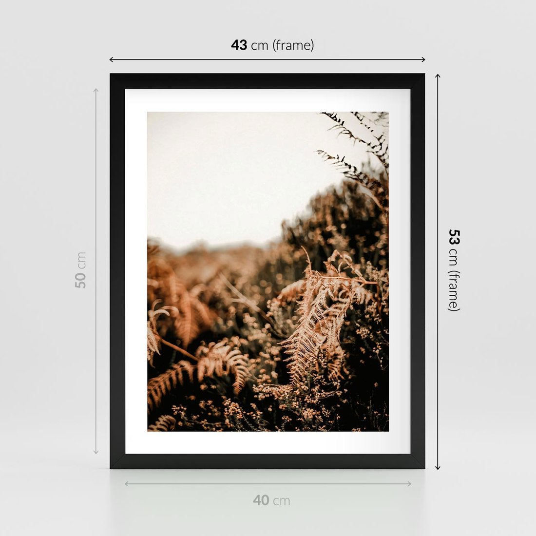 Plakat w ramie 40x50 - Jesienna Harmonia - suche paprocie, jesienny krajobraz - rama czarna