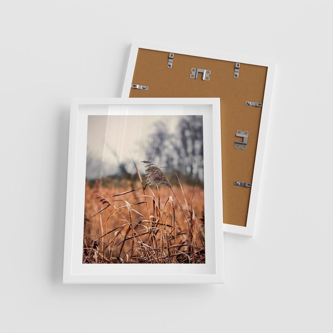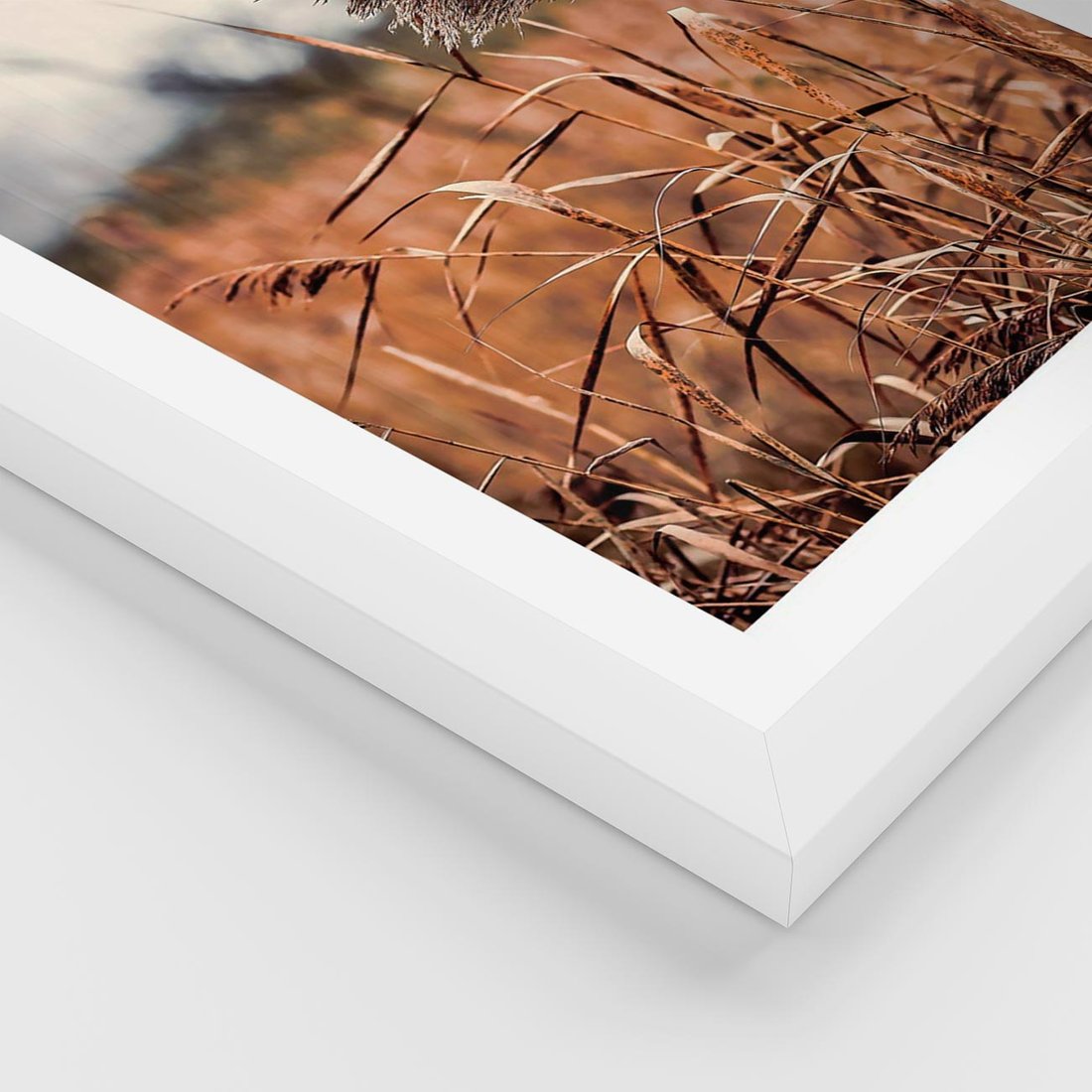 Plakat w ramie 40x50 - Jesienna Melancholia - suche trawy, jesień - rama biała