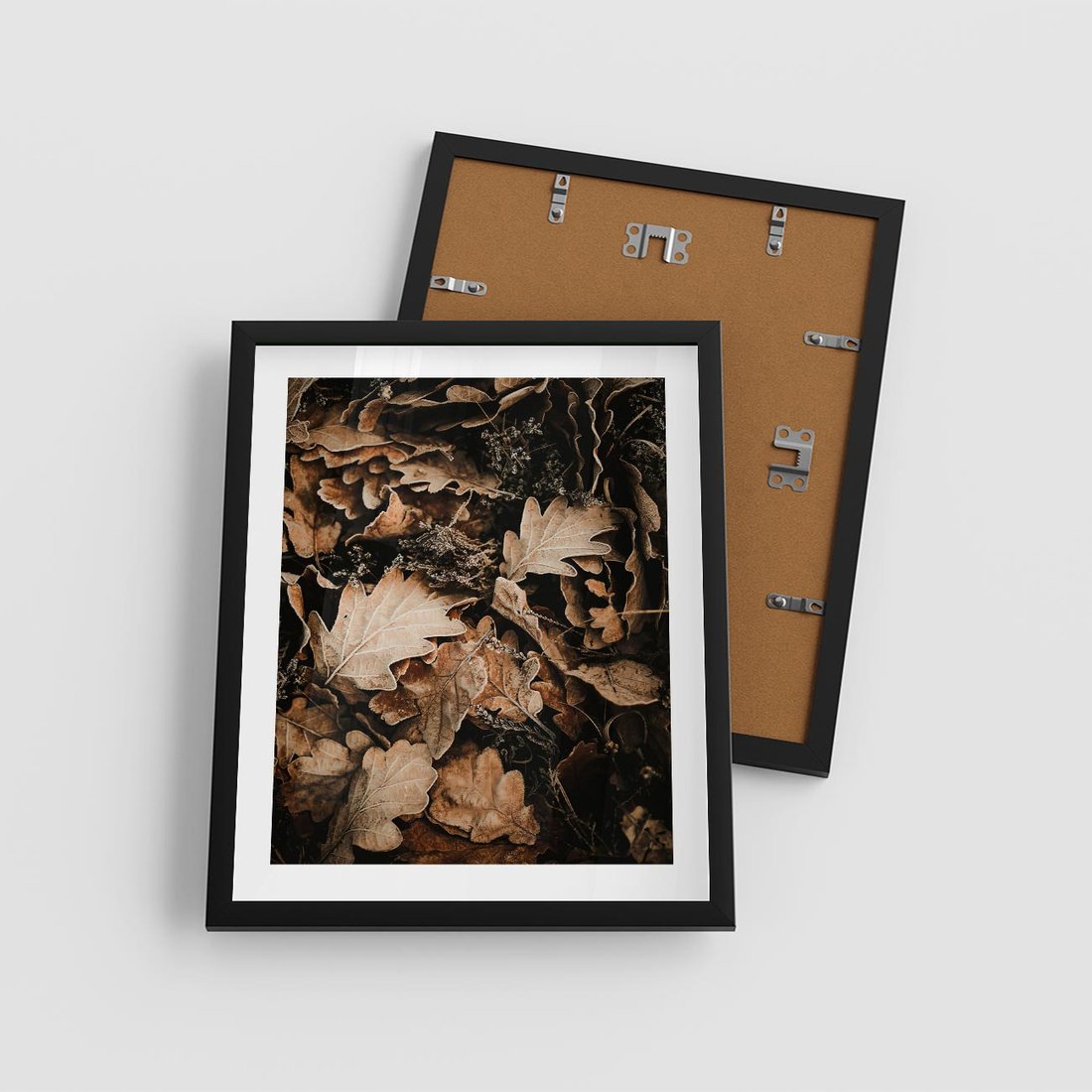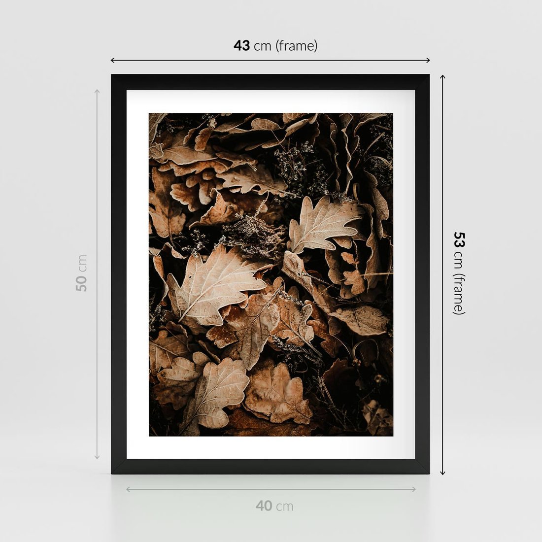 Plakat w ramie 40x50 - Jesienna Melodia: Liście i Szyszki - suche liście, szyszki - rama czarna