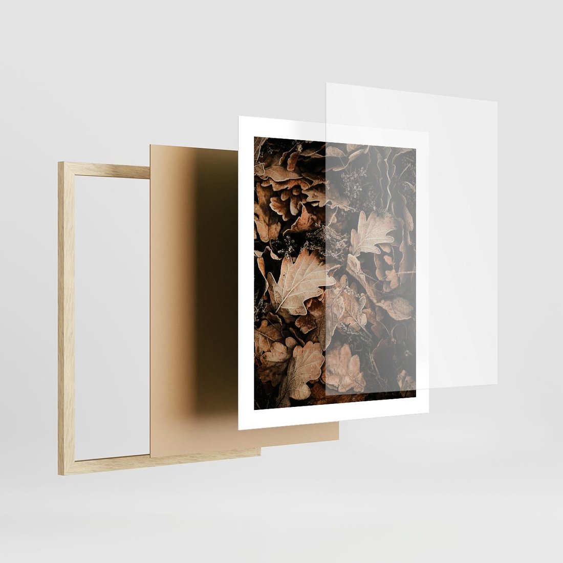 Plakat w ramie 40x50 - Jesienna Melodia: Liście i Szyszki - suche liście, szyszki - rama drewno