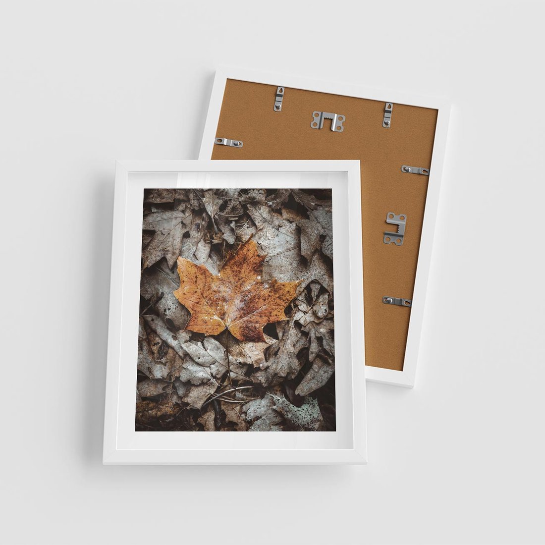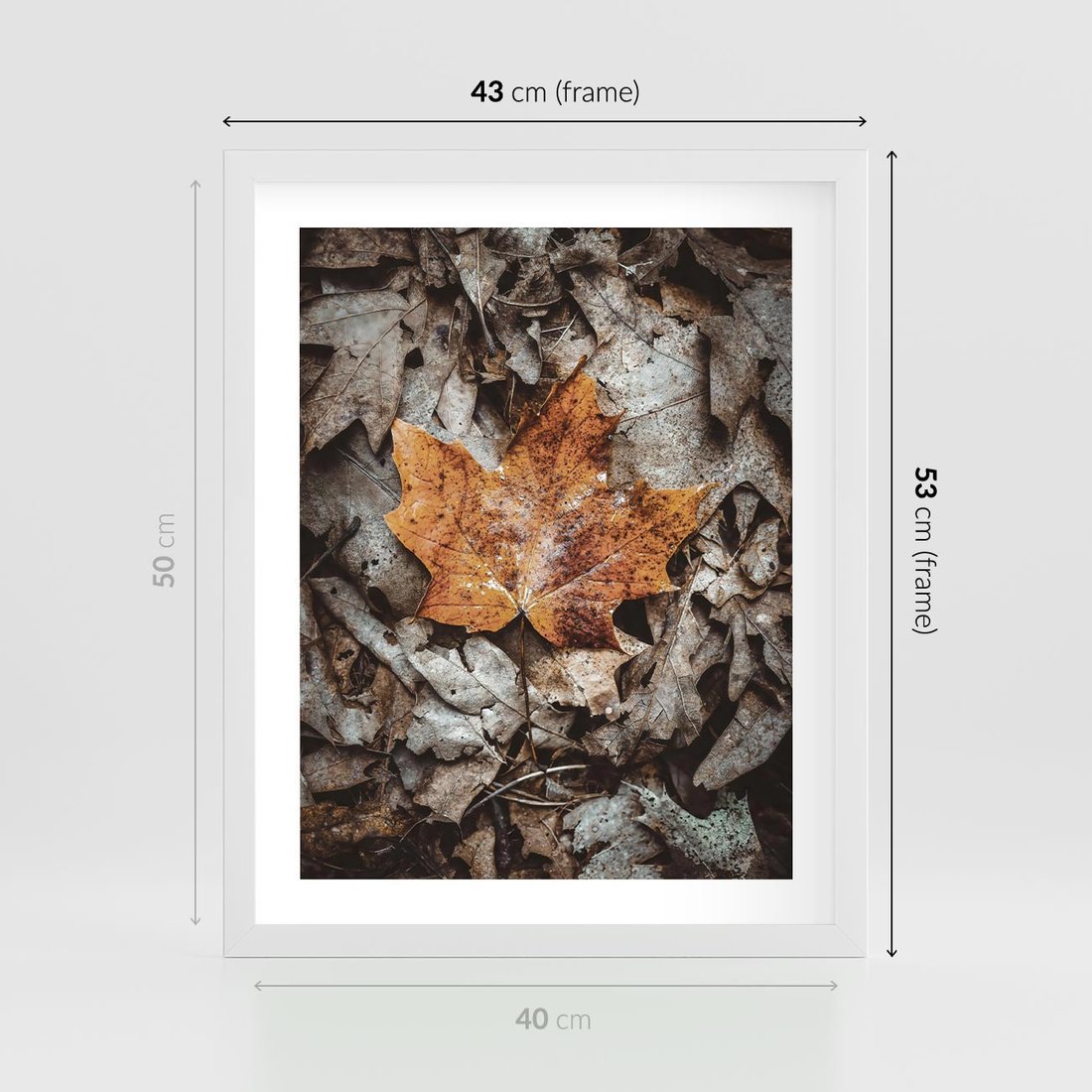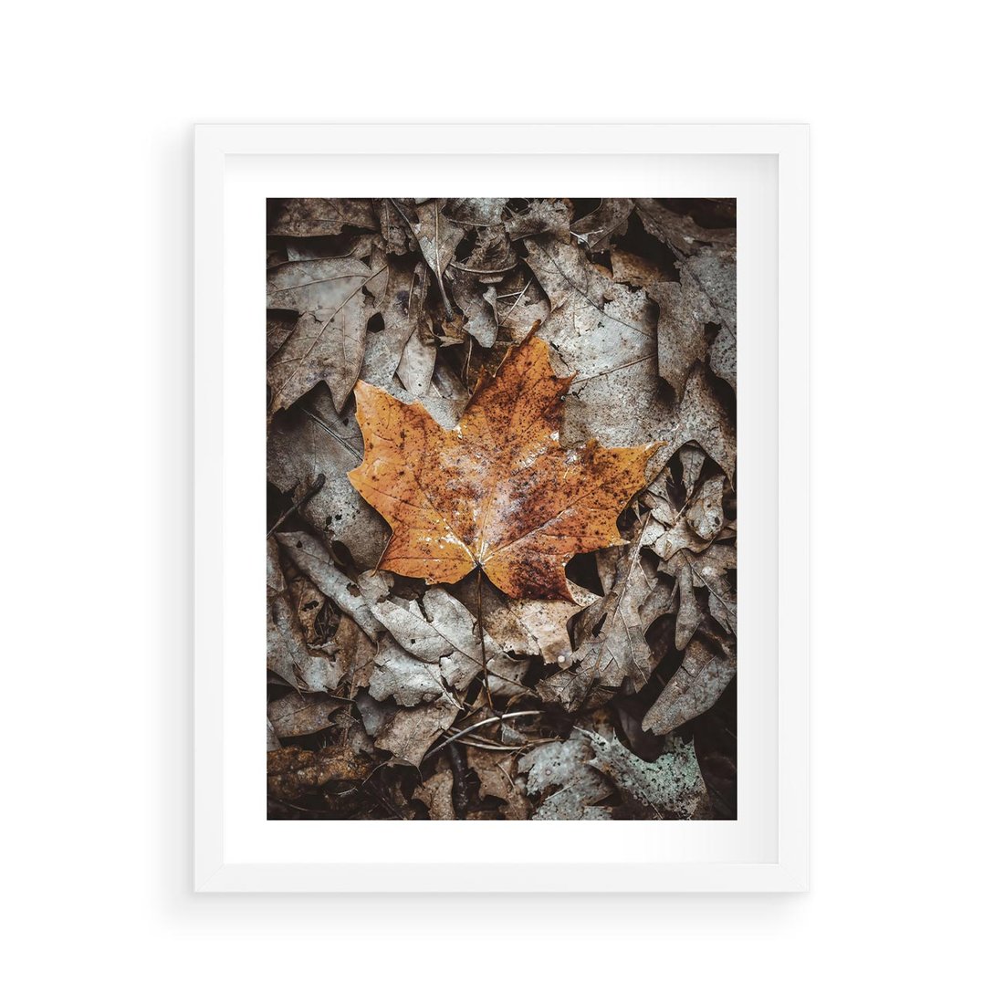 Plakat w ramie 40x50 - Jesienne Czarowanie - suchy liść, żółty - rama biała