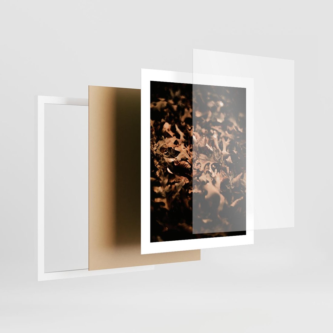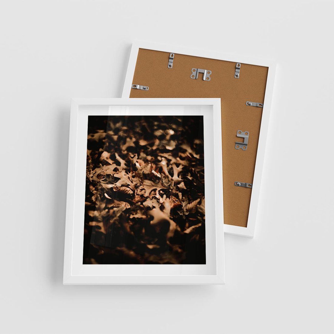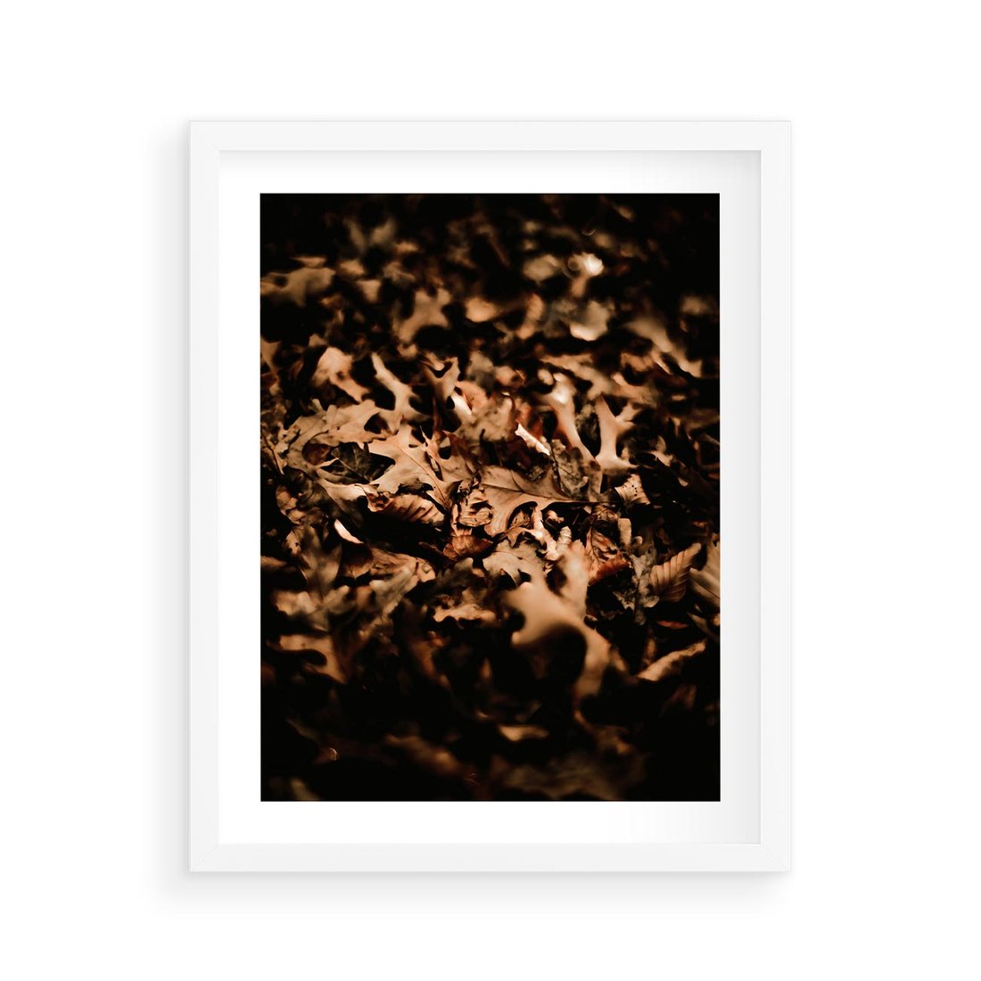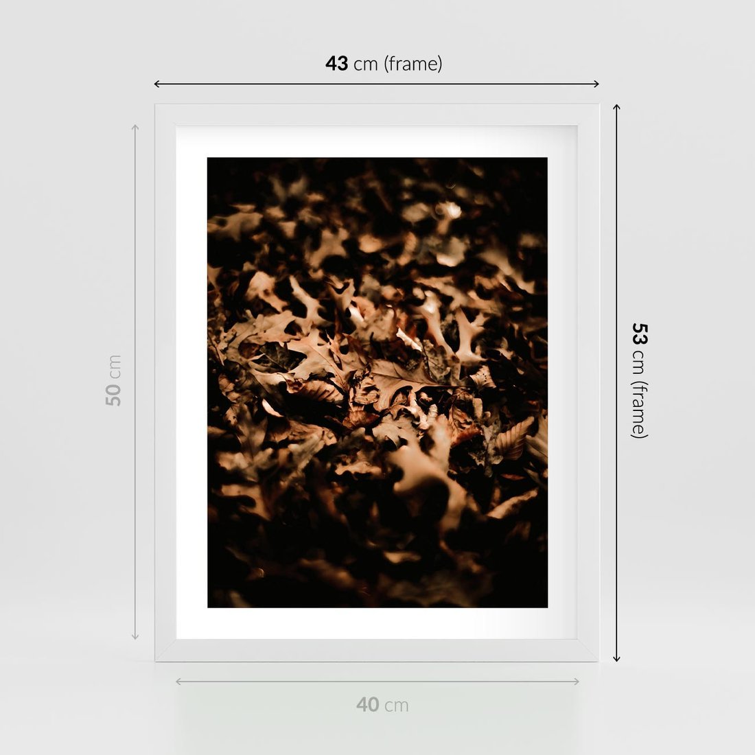 Plakat w ramie 40x50 - Jesienne Liście: Nostalgiczna Kolorystyka - suche liście, jesień - rama biała