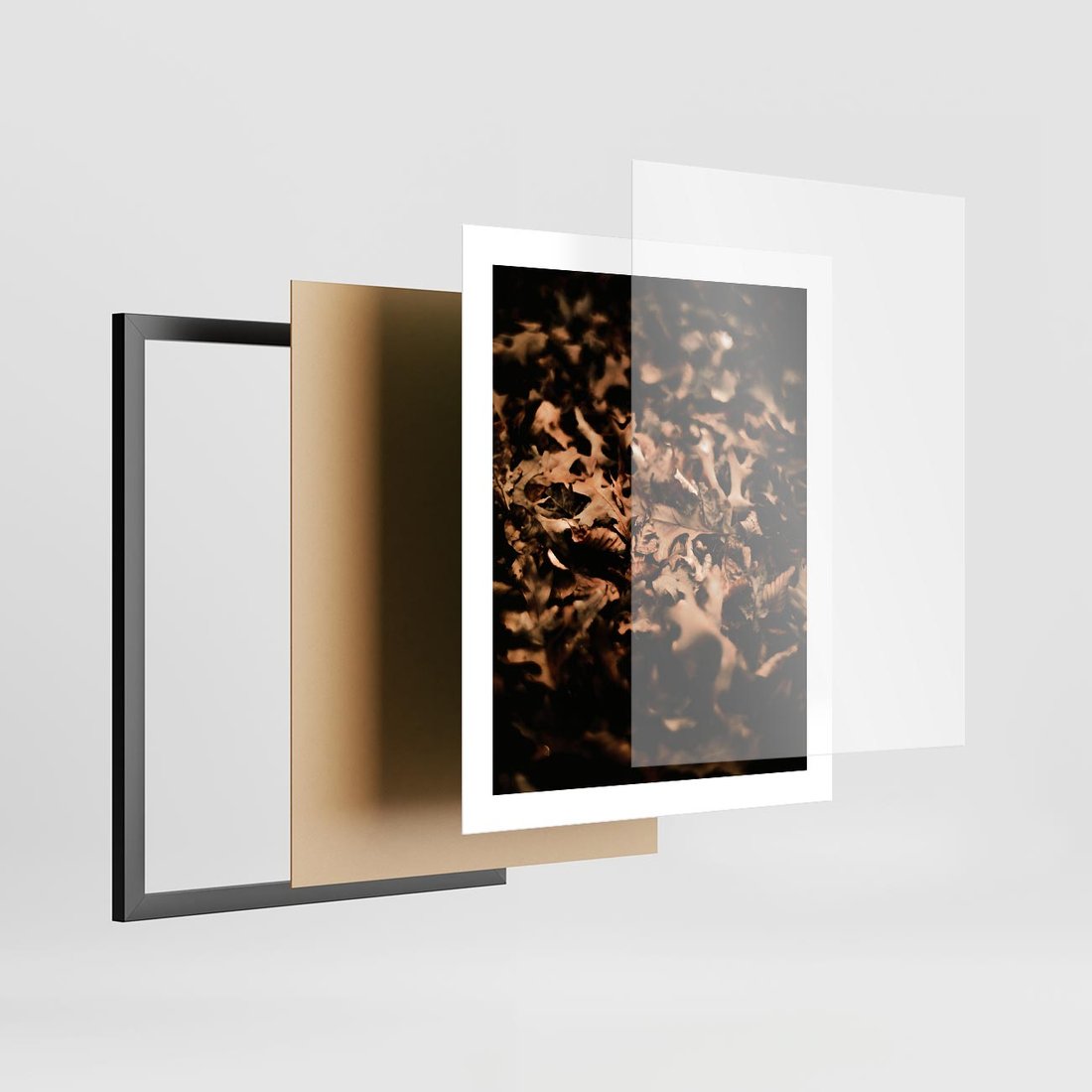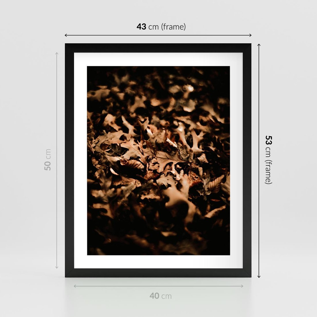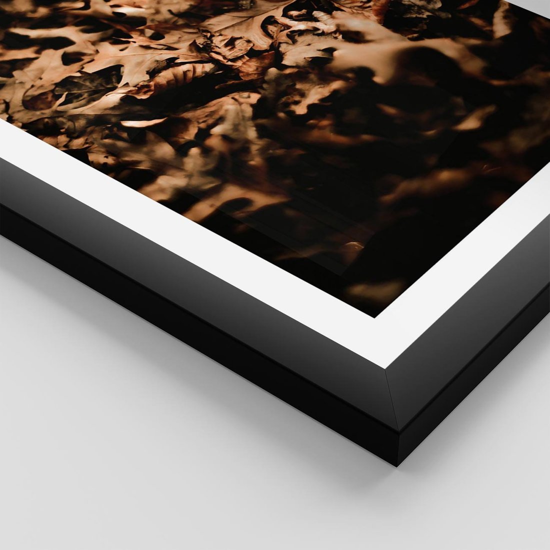 Plakat w ramie 40x50 - Jesienne Liście: Nostalgiczna Kolorystyka - suche liście, jesień - rama czarna