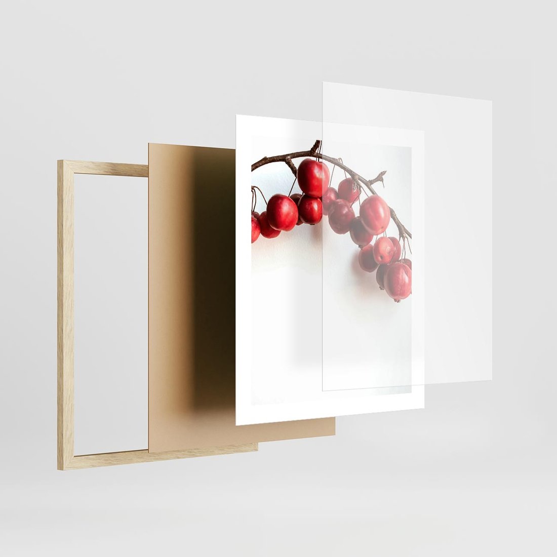 Plakat w ramie 40x50 - Jesienne Owoce - jarzębina, czerwone owoce - rama drewno