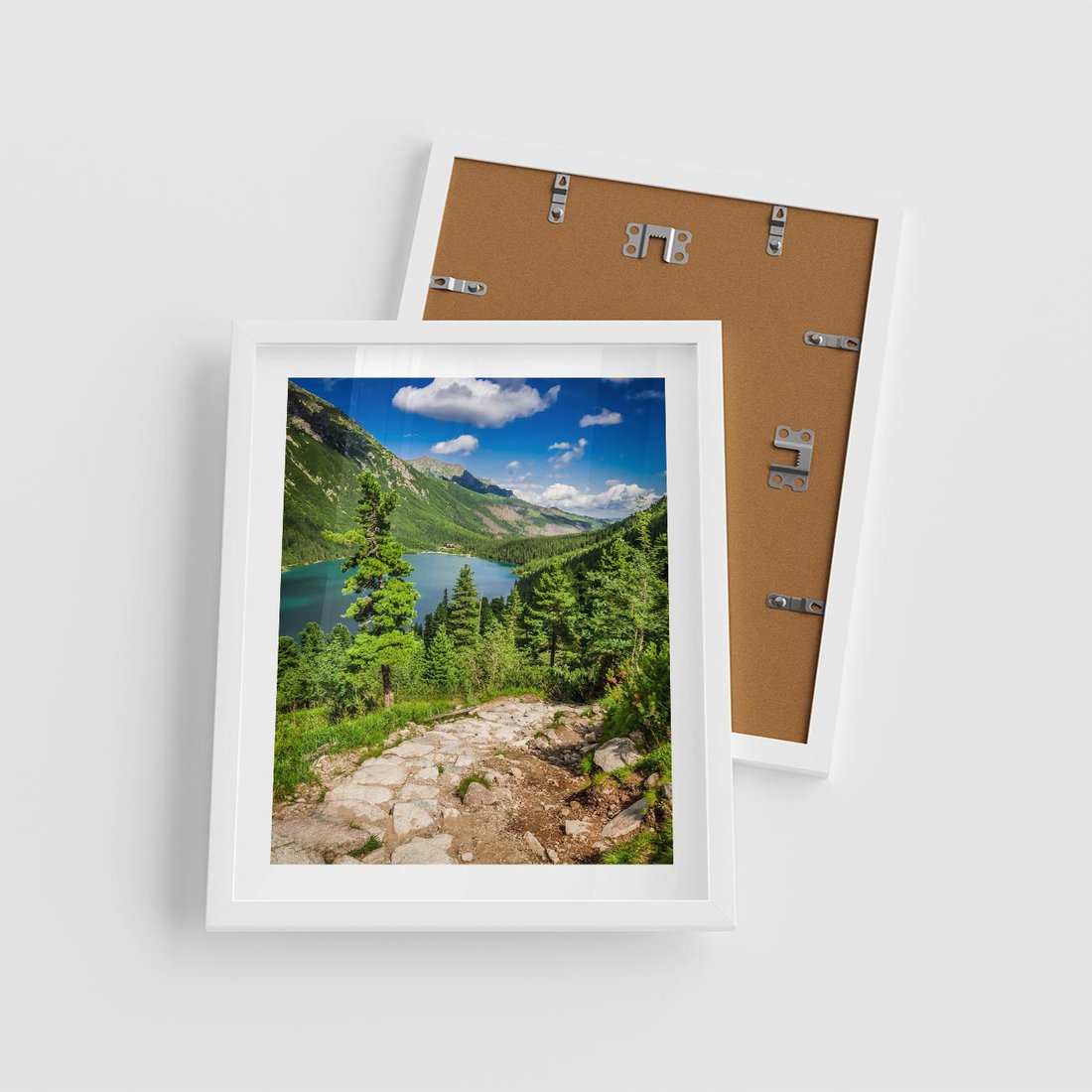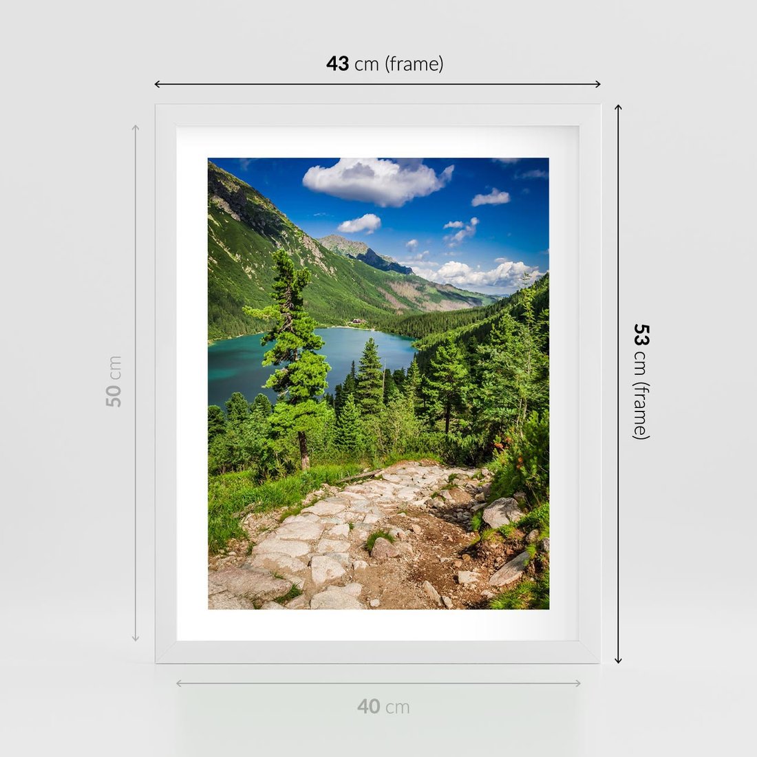 Plakat w ramie 40x50 - Jezioro górskie: harmonia natury - jezioro, góry - rama biała