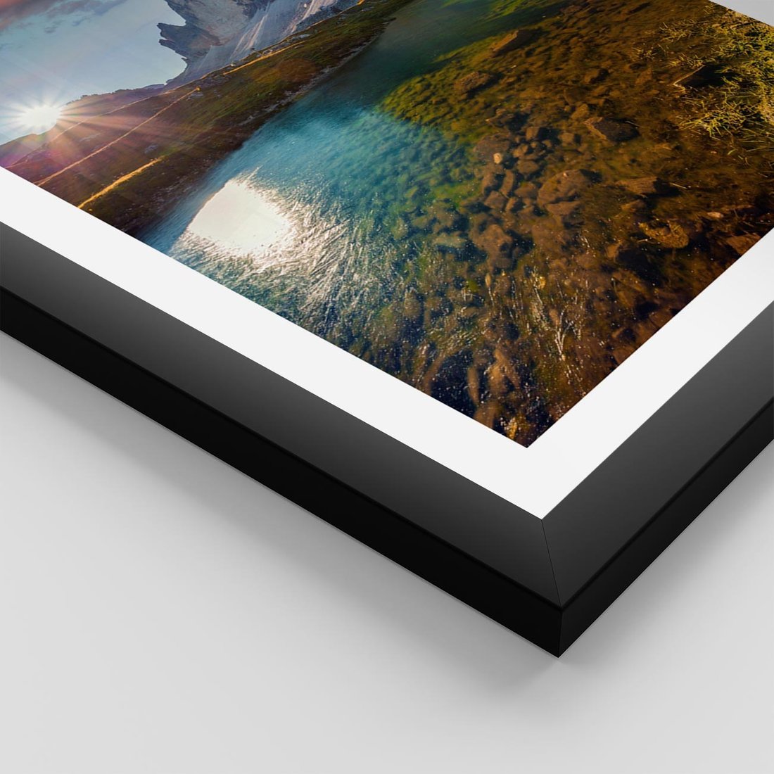 Plakat w ramie 40x50 - Jezioro wśród majestatycznych gór - jezioro, góry - rama czarna