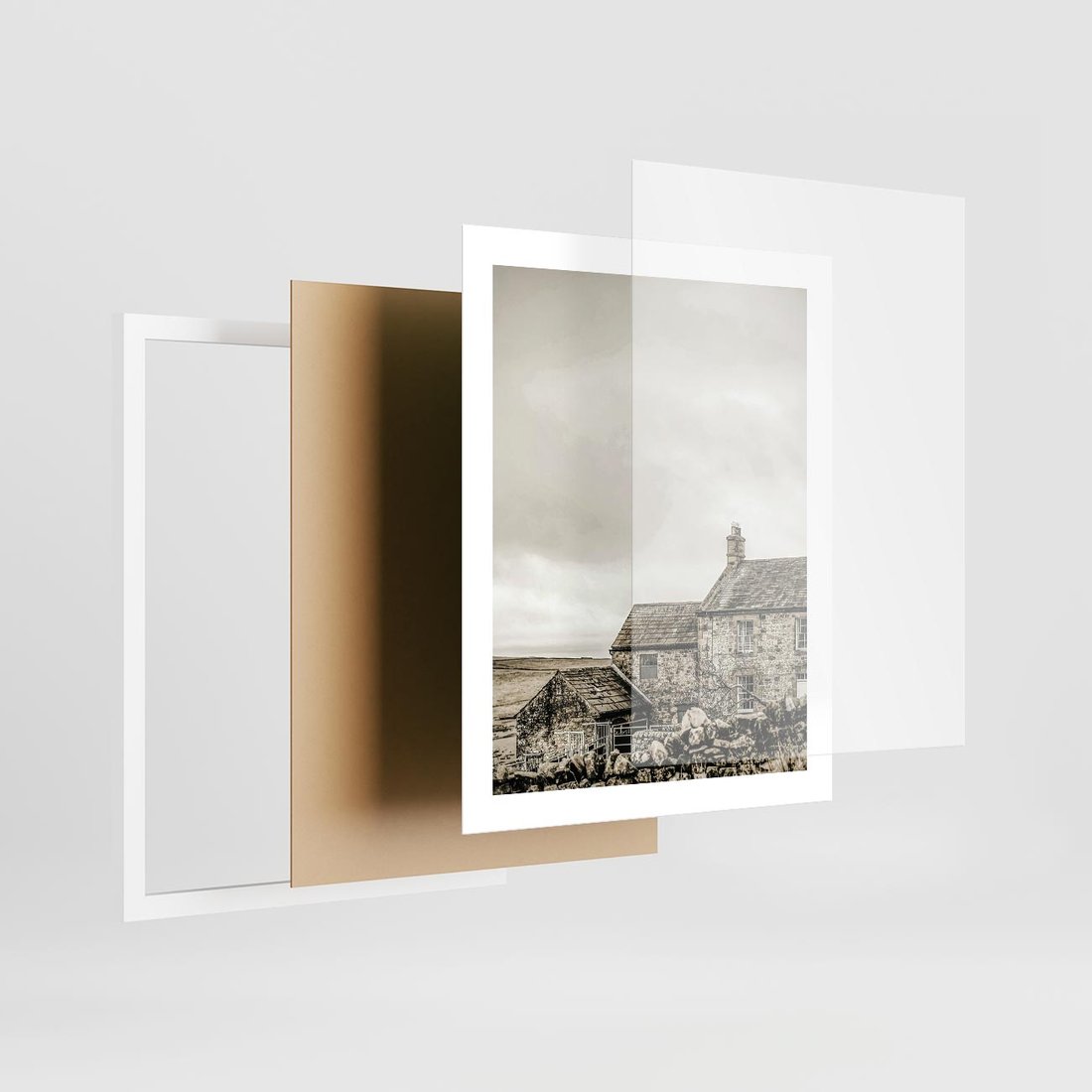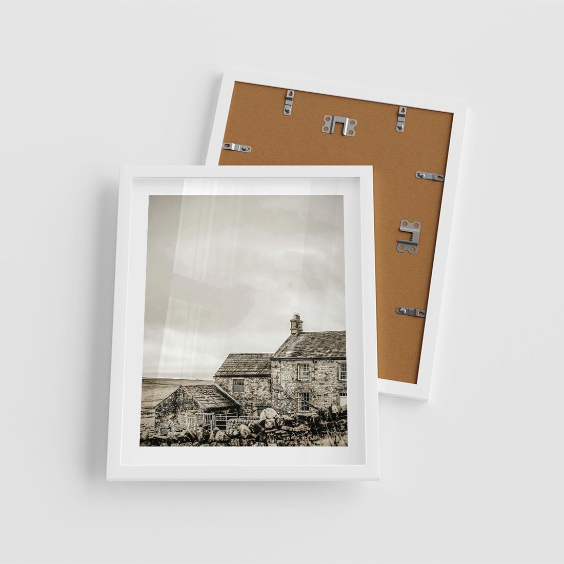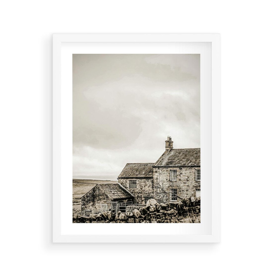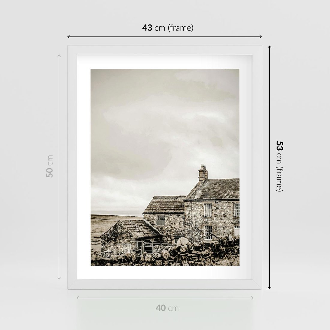 Plakat w ramie 40x50 - Kamienny Dom w Odcieniach Sepii - stary kamienny dom, odcienie sepii - rama biała