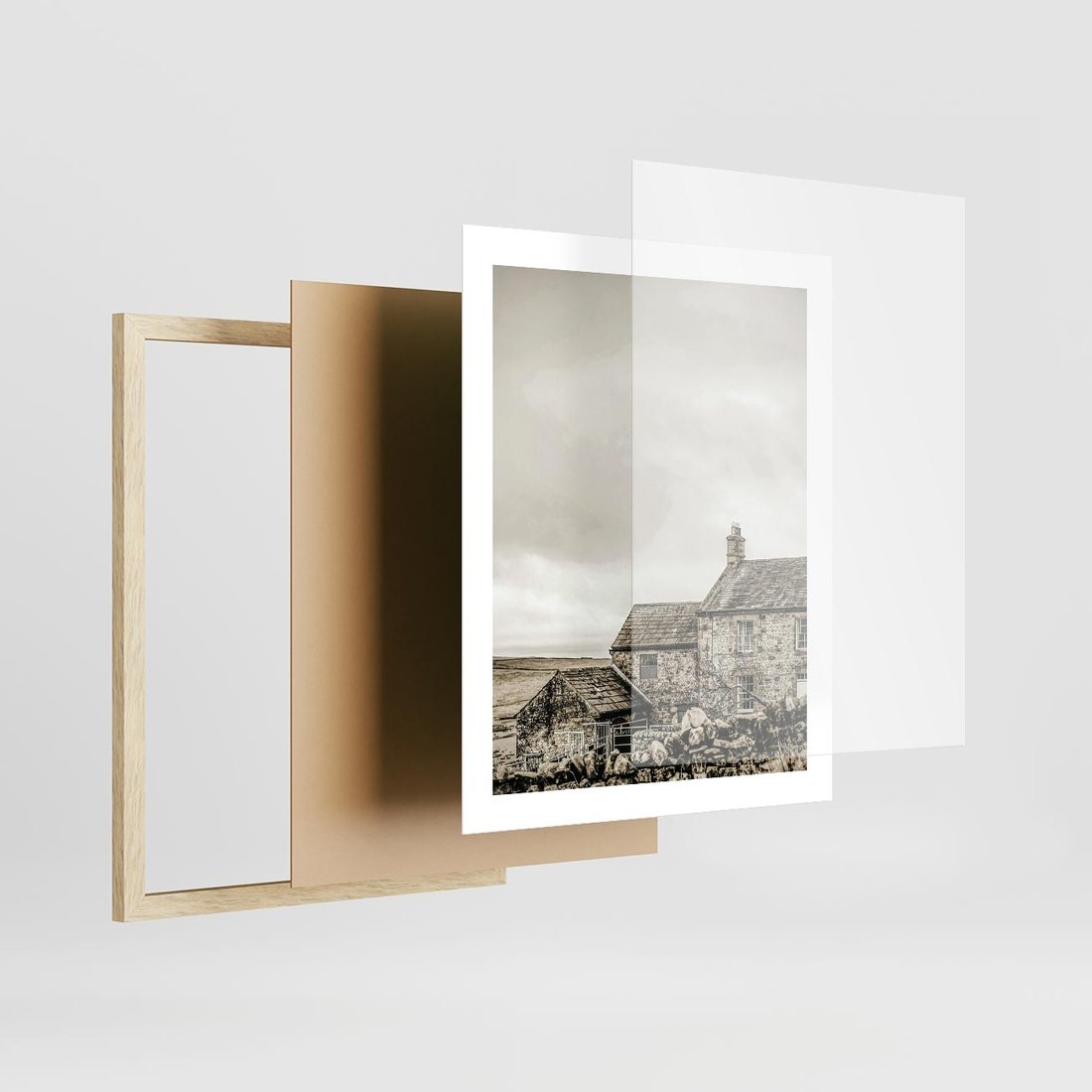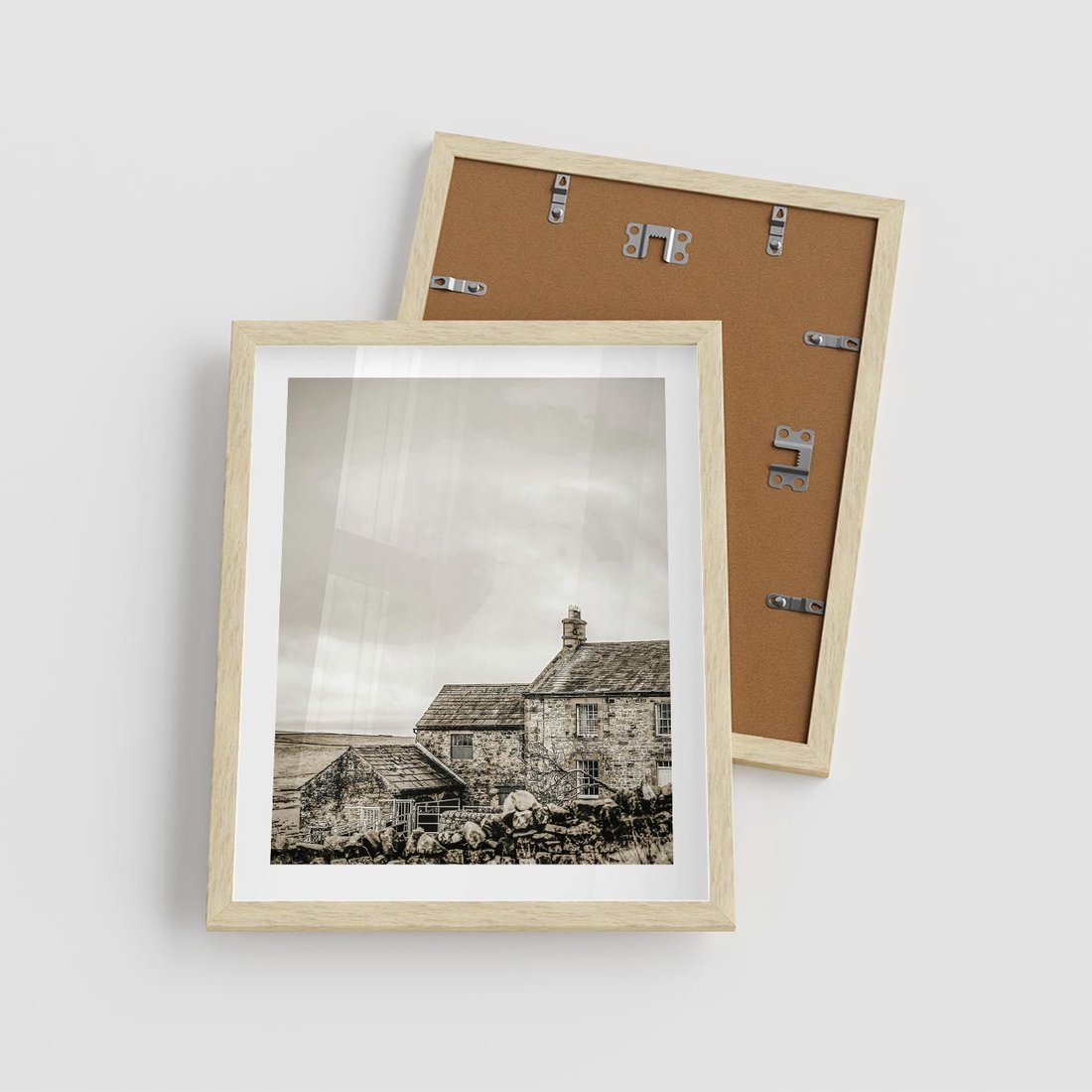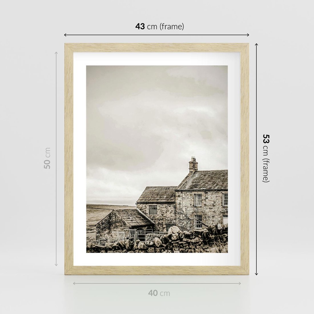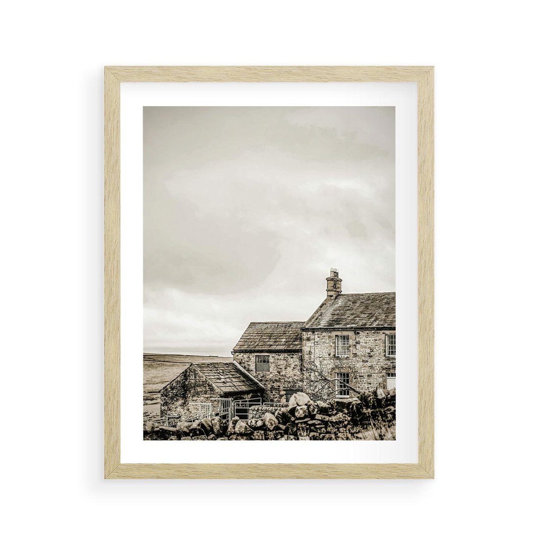 Plakat w ramie 40x50 - Kamienny Dom w Odcieniach Sepii - stary kamienny dom, odcienie sepii - rama drewno
