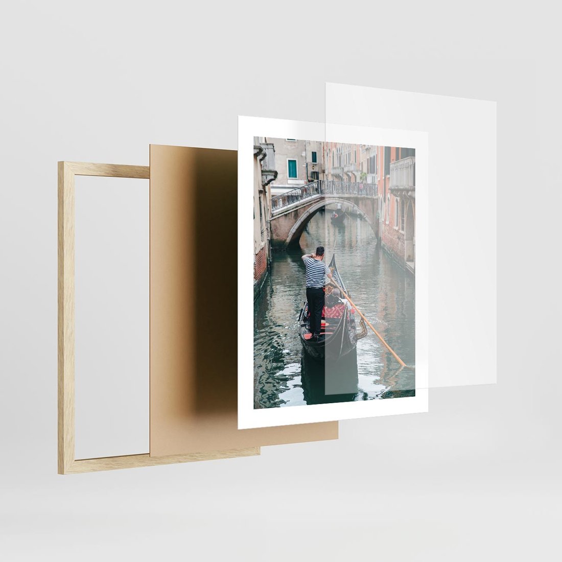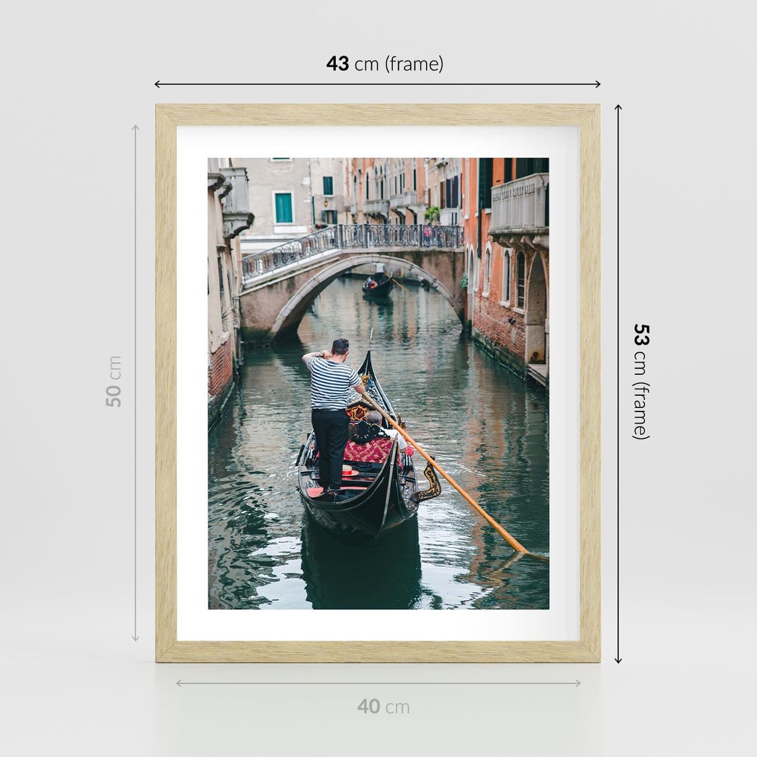 Plakat w ramie 40x50 - Kanały Wenecji - gondola, Wenecja - rama drewno
