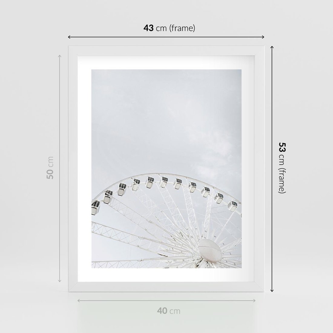 Plakat w ramie 40x50 - Karuzela Młyńska: Nostalgiczne Koło - młyńskie koło, karuzela - rama biała