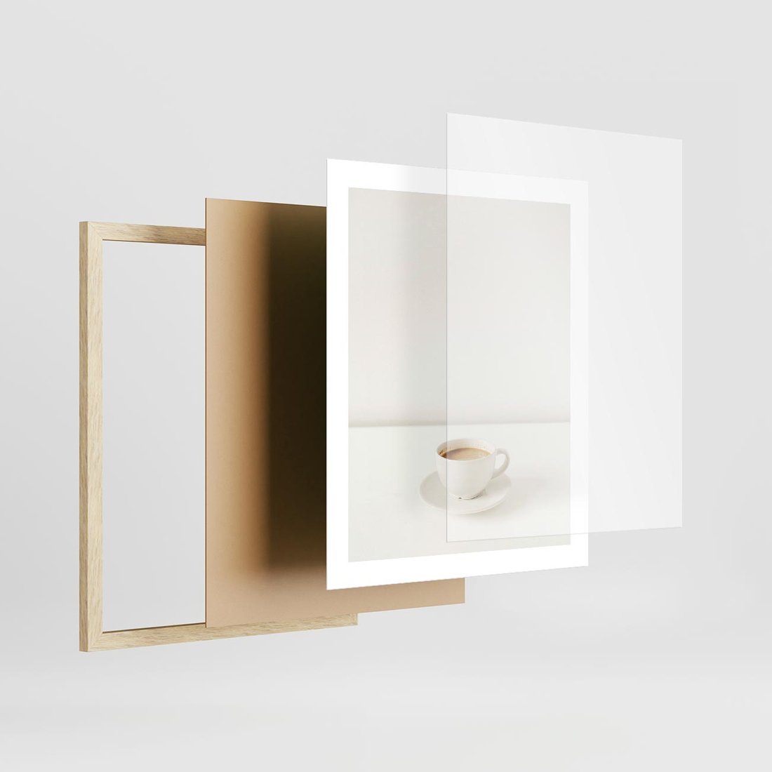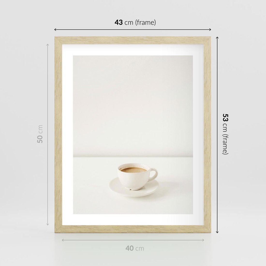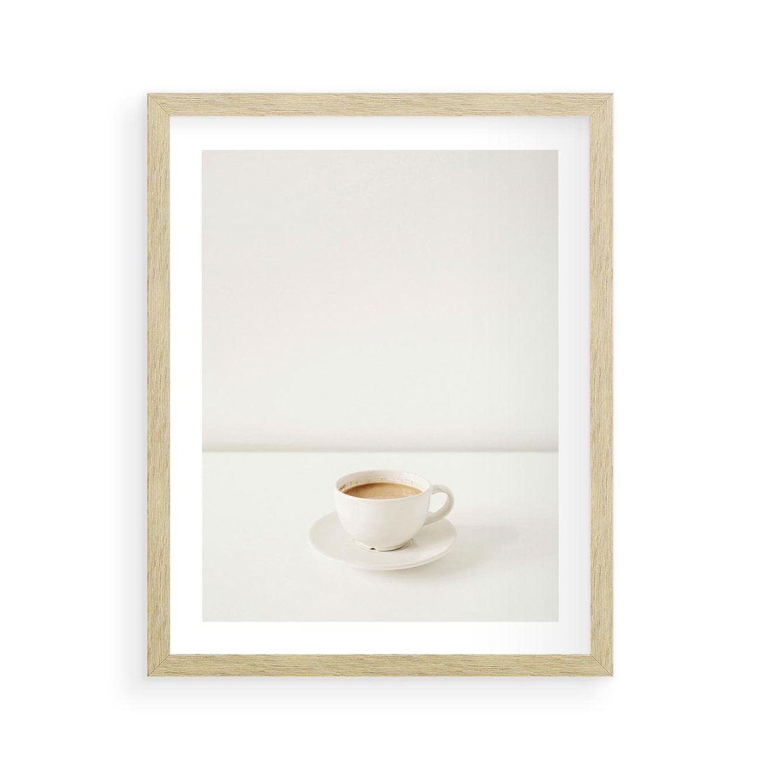 Plakat w ramie 40x50 - Kawa w Prostocie - kawa w filizance, białe tłó - rama drewno