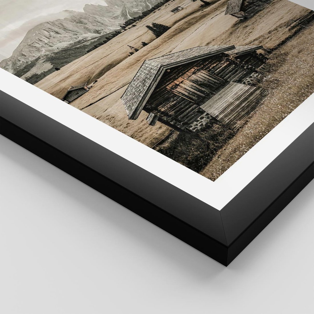 Plakat w ramie 40x50 - Klasyczny Urok Górskich Domków - domki, w górach - rama czarna