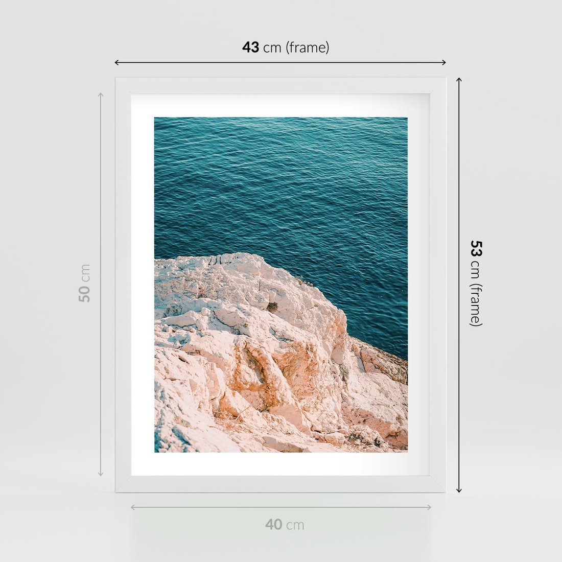 Plakat w ramie 40x50 - Klifowy Horyzont: Brzeg Morza - brzeg morza, klify - rama biała