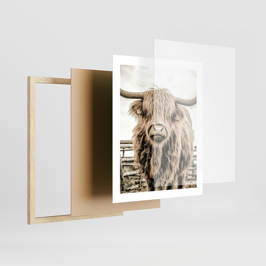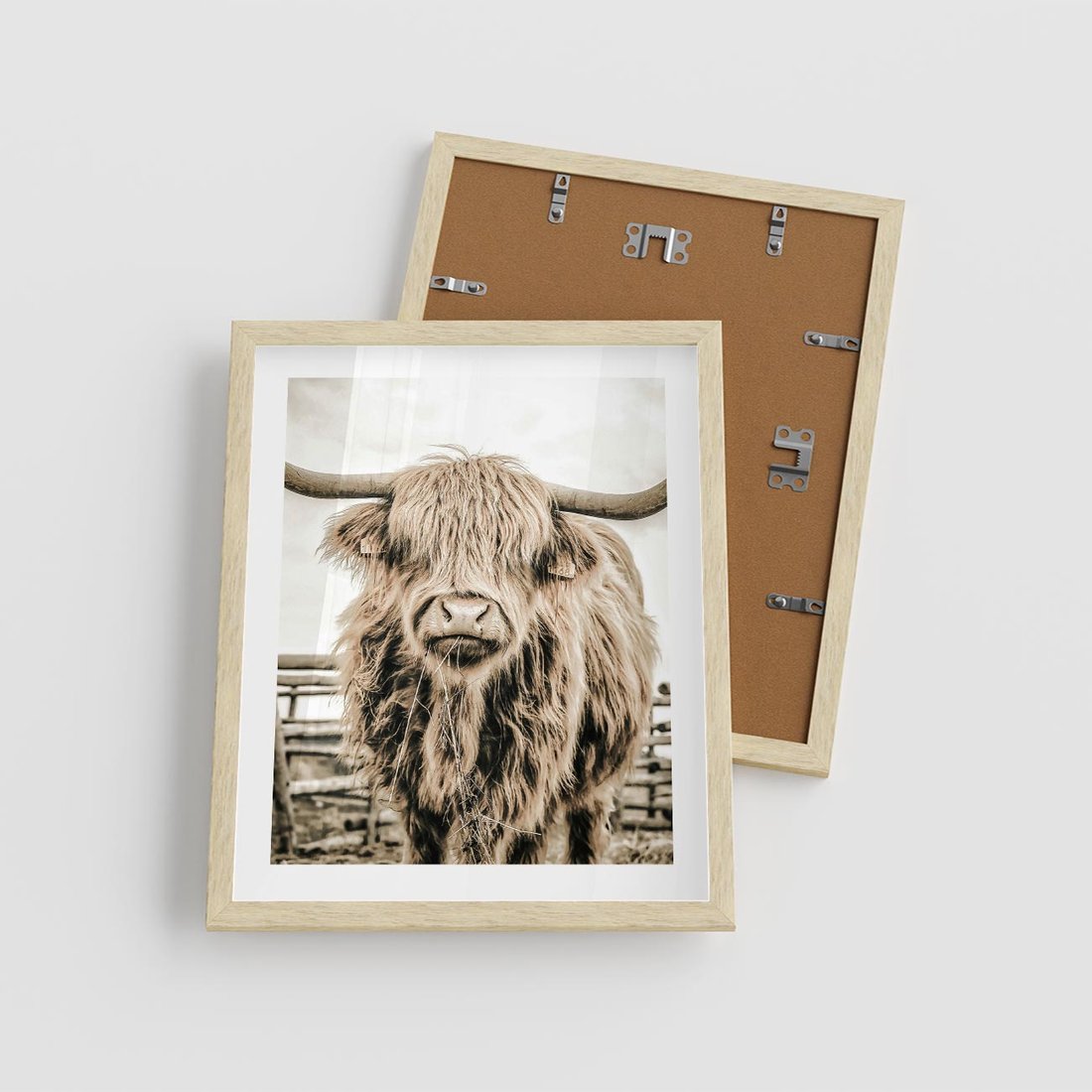 Plakat w ramie 40x50 - Klimat Wiejskiego Życia - amerykańska krowa, byk - rama drewno