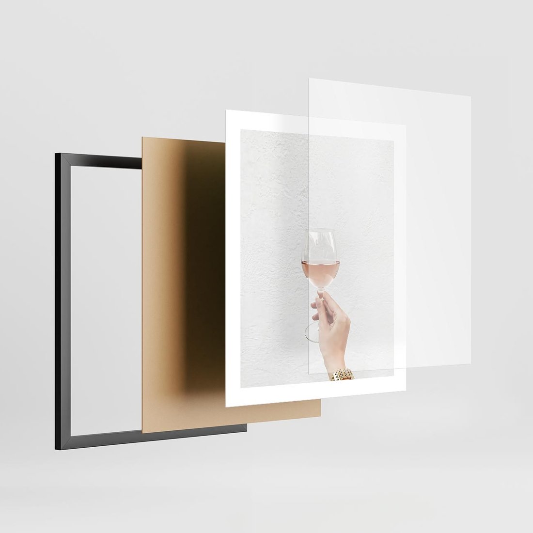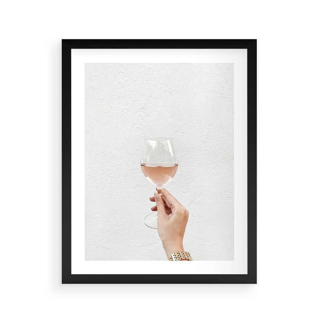 Plakat w ramie 40x50 - Kobieca Dłoń i Różowe Wino - kieliszek różowego wina, kobieca dłoń - rama czarna