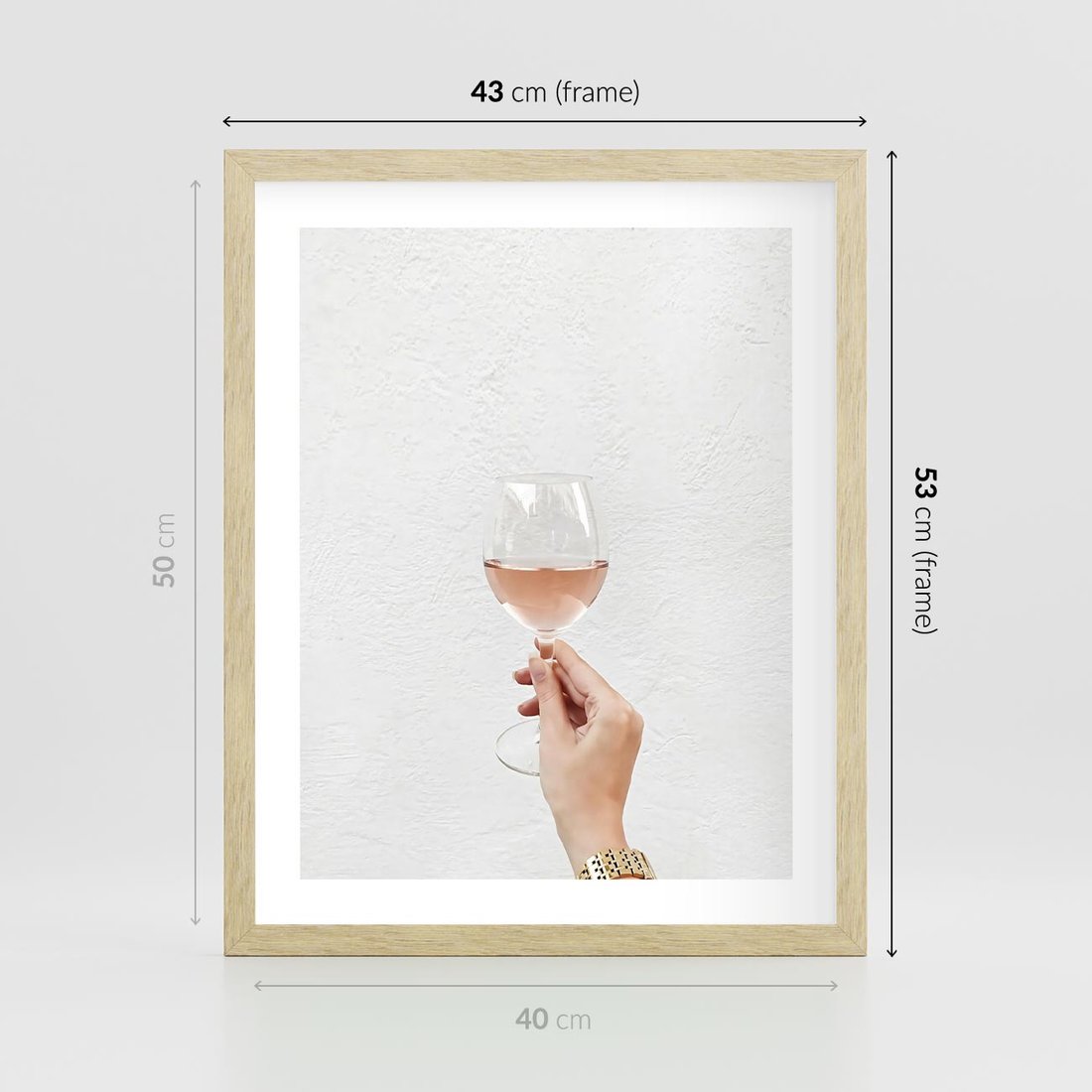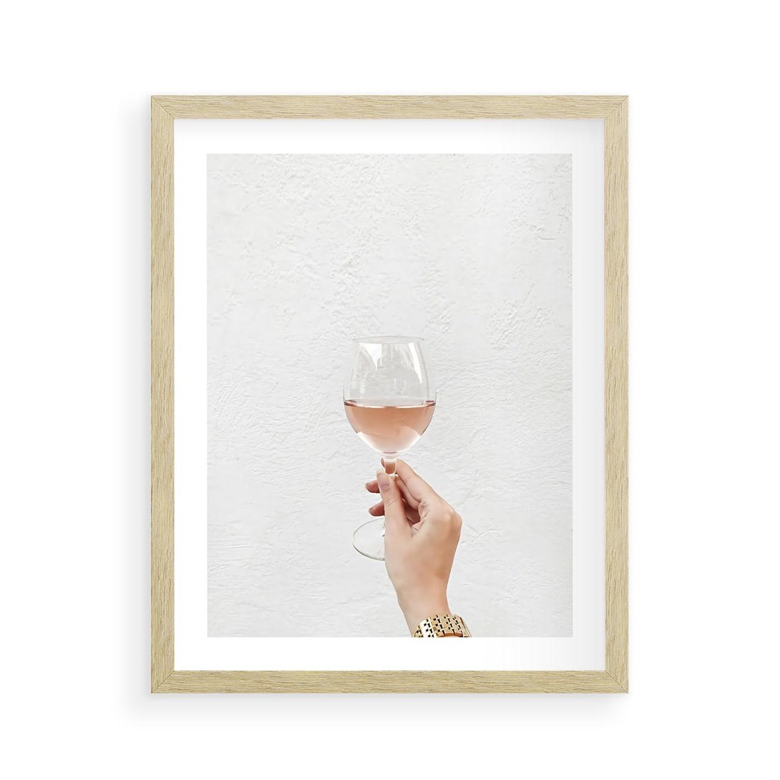 Plakat w ramie 40x50 - Kobieca Dłoń i Różowe Wino - kieliszek różowego wina, kobieca dłoń - rama drewno