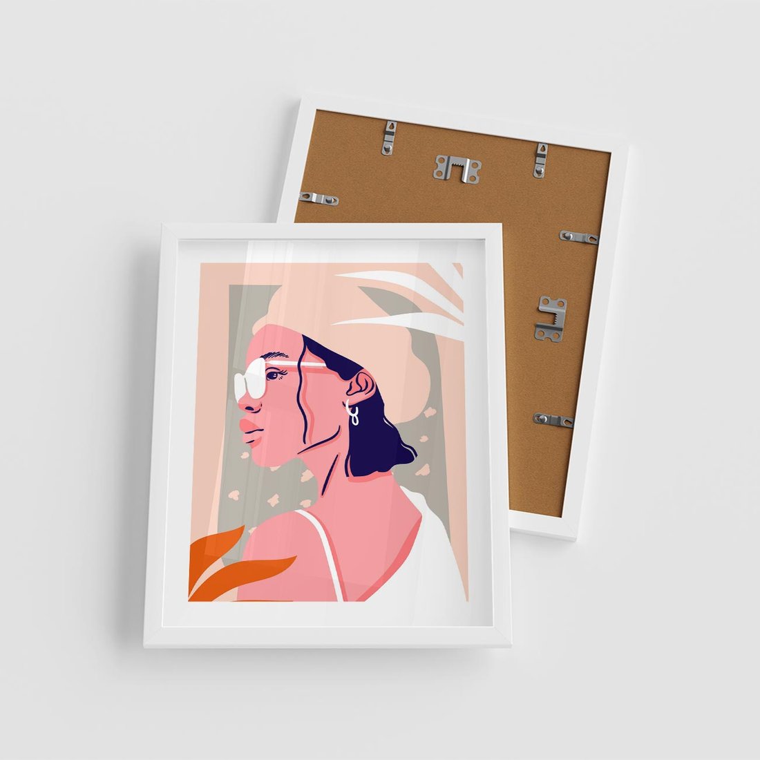 Twój nowoczesny plakat w stylu retro prezentuje wyjątkowy portret kobiety w stonowanych kolorach. To połączenie klasycznego uroku z nowoczesnym stylem, idealne do dodania subtelnej elegancji i artystycznego wyrazu do Twojej przestrzeni.